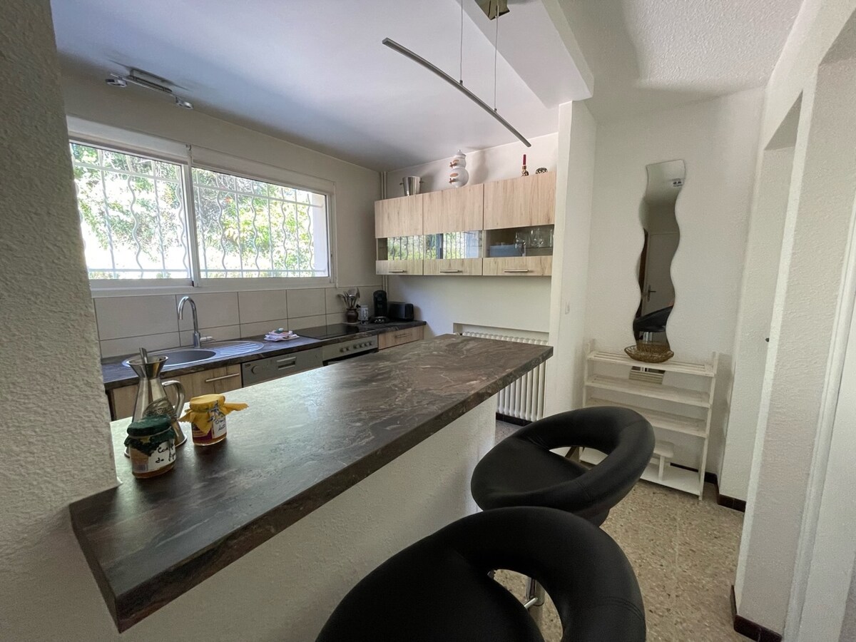 獨立公寓,70 平方公尺,位於瑪諾斯克 (Manosque) 的一個理想住宅區,坐落在一個美妙的地區中心。 安靜,可欣賞 Mont d'Or 的壯麗景色,一間大臥室,配有 180 公分的大床和兩個可轉換成單人床的墊腳凳、浴室、設備齊全的廚房(冰箱、烤箱、電磁爐、微波爐、洗碗機、2 臺電視、可反轉的空調、洗衣機和烘乾機)、更衣室。 40 平方公尺的大露台,配有 2.5 公尺 x 2.5 公尺的泳池 + 烤肉架、水療中心
