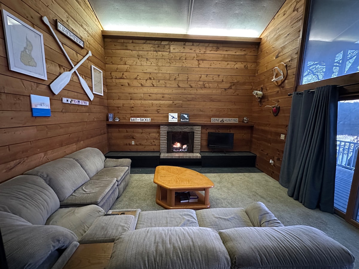 •金池塘上的舒適小屋! •營火設施(免費木材)! •釣魚! •皮艇、腳踏船獨木舟、划船! • 徒步旅行! •游泳! •沙灘! •野餐桌、椅子! •烤肉架! • WiFi! •烹飪用具,4 六人份! •空調! .肥皂石壁爐! .舒適的沙發、智慧電視! 床: 2張全尺寸床、2張雙人床、1張門廊雙人床! •水邊的14x14帳篷平台!(不提供露營裝備) •僻靜! •野生動物!