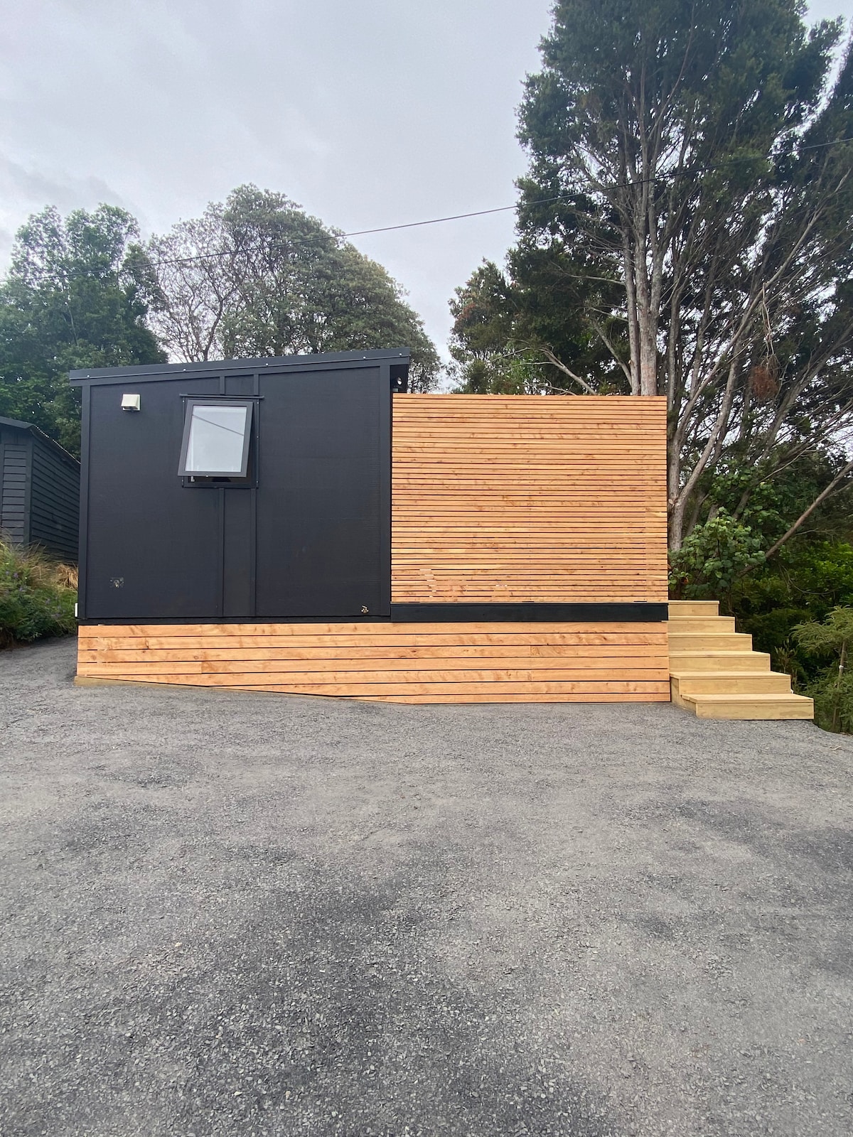 Reconnect with nature in a tiny house surrounded by native bush in a calm and inspiring space overlooking the Tasman sea and just above the world class surf breaks of Indicators and Whale Bay. On the property we have a number of completely unique structures spaced apart in the bush to give maximum privacy. All are designed and positioned to make the most of the surrounding bush and ocean below. There is a large lawn area for guests to enjoy and a beautiful outdoor hot water shower.