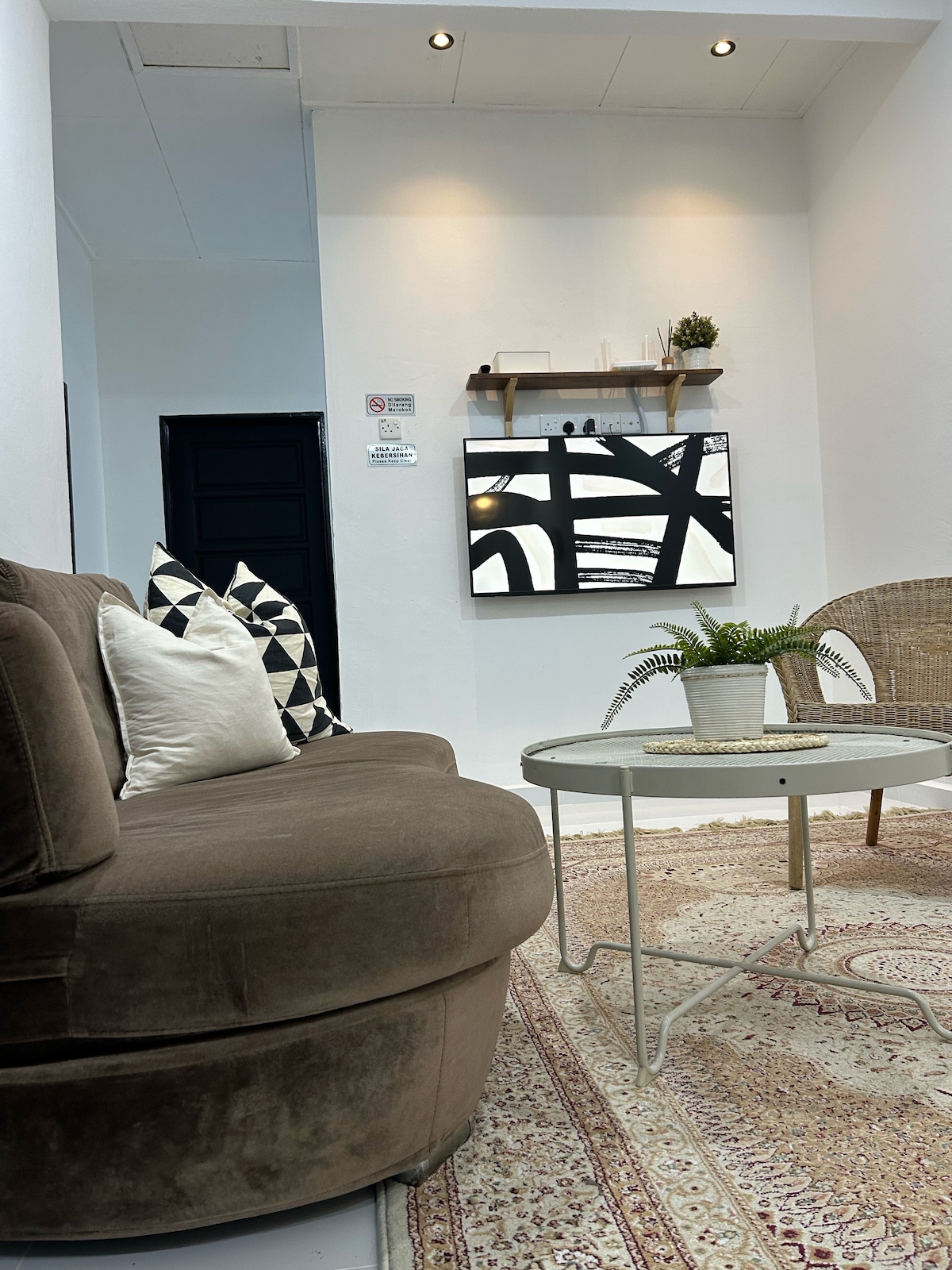 Welcome to Calme Luna Suite, with 4 bedrooms and a stunning front-facing pool. Located just a short distance from Kuala Terengganu's city center and attractions, our home offers the perfect blend of luxury and comfort for your getaway. Step inside to discover a modern interior with ample indoor and outdoor spaces designed for relaxation and socializing. The open-plan living area is perfect for family gatherings, featuring comfortable seating and a dining area where you can enjoy meals together.