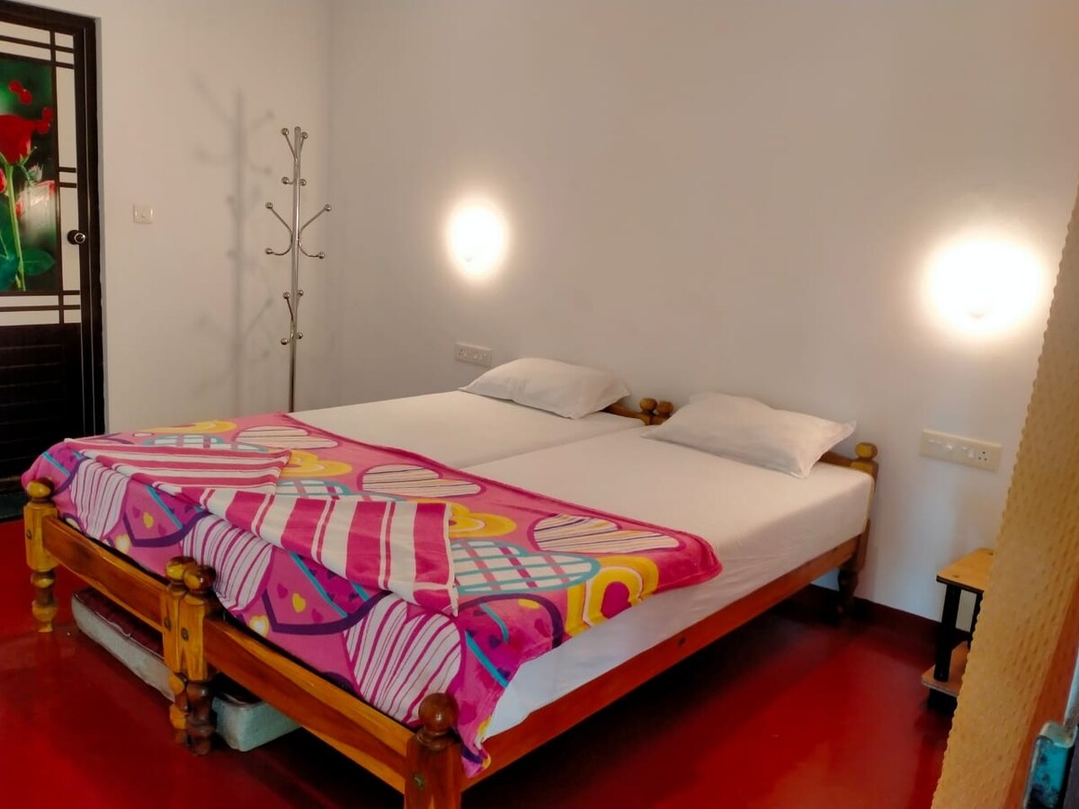 體驗寬敞的傳統喀拉拉邦房源,感受大自然的氣息。 在美麗的空間中放鬆身心,在開放式浴池中沖癮,聽著鳥鳴聲享受寧靜的夜晚。 此外,您還可以探索一個滿是樹木的巨大後院,並在我們的寒冷區域放鬆身心,享受書籍和桌遊帶來的無盡樂趣。 這間永恆的房源將歷史、舒適和自然融合在一起,是尋找靜謐環境的理想之選。 也可供長期住宿,並有專屬工作空間:)