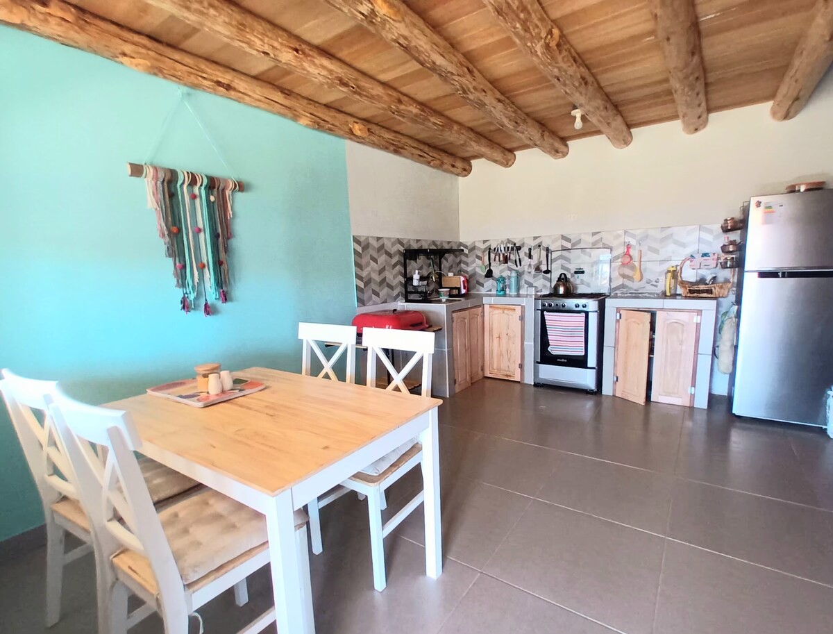 The house is located at the beginning of a forest where you will find the tranquility you need, in addition, it has everything necessary to give you a few days of rest, you will immediately connect with nature, and above all, you will enjoy the spaces privately; If you need to work you will have internet; a Queen bed that will allow you to rest comfortably, we also have a Spanish shower with hot water all the time and a medicinal.