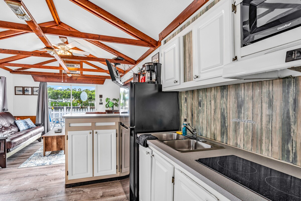 更新的海濱2BR/2BA ,配有加大雙人床、第二張標準雙人床和拉出式沙發。35英尺海堤—帶上你的船! 享受配備不鏽鋼電器的石英廚房。 位於Venture Out ,一個安靜、適合家庭入住的度假村,有釣魚、龍蝦、泳池、按摩浴缸、皮克球、網球、籃球、娛樂中心、自行車、皮艇和SUP。 在基韋斯特(20英里)和馬拉松之間。 免費WiFi ;臥室和客廳都有Roku電視。 皮艇、立式槳板和儲物區,配有額外的冰箱和冷凍庫。