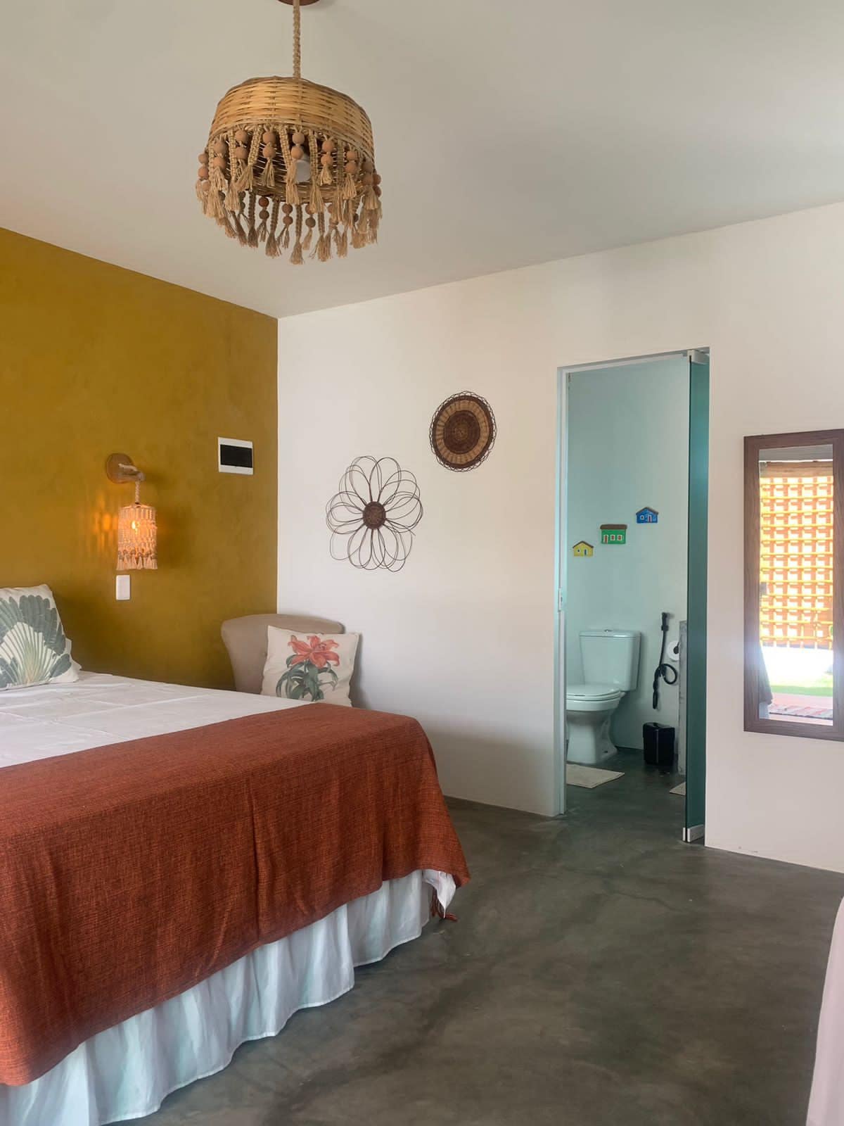 As suítes possuem ar-condicionado split, frigobar retrô, e TV Smart de 32 polegadas com TV à cabo e Netflix. Colchões e roupa de cama de excelente qualidade. Cada suíte possui varanda com rede voltada para um amplo quintal, com várias árvores frutíferas, onde sempre temos passarinhos livres e a visita de micos-estrela.