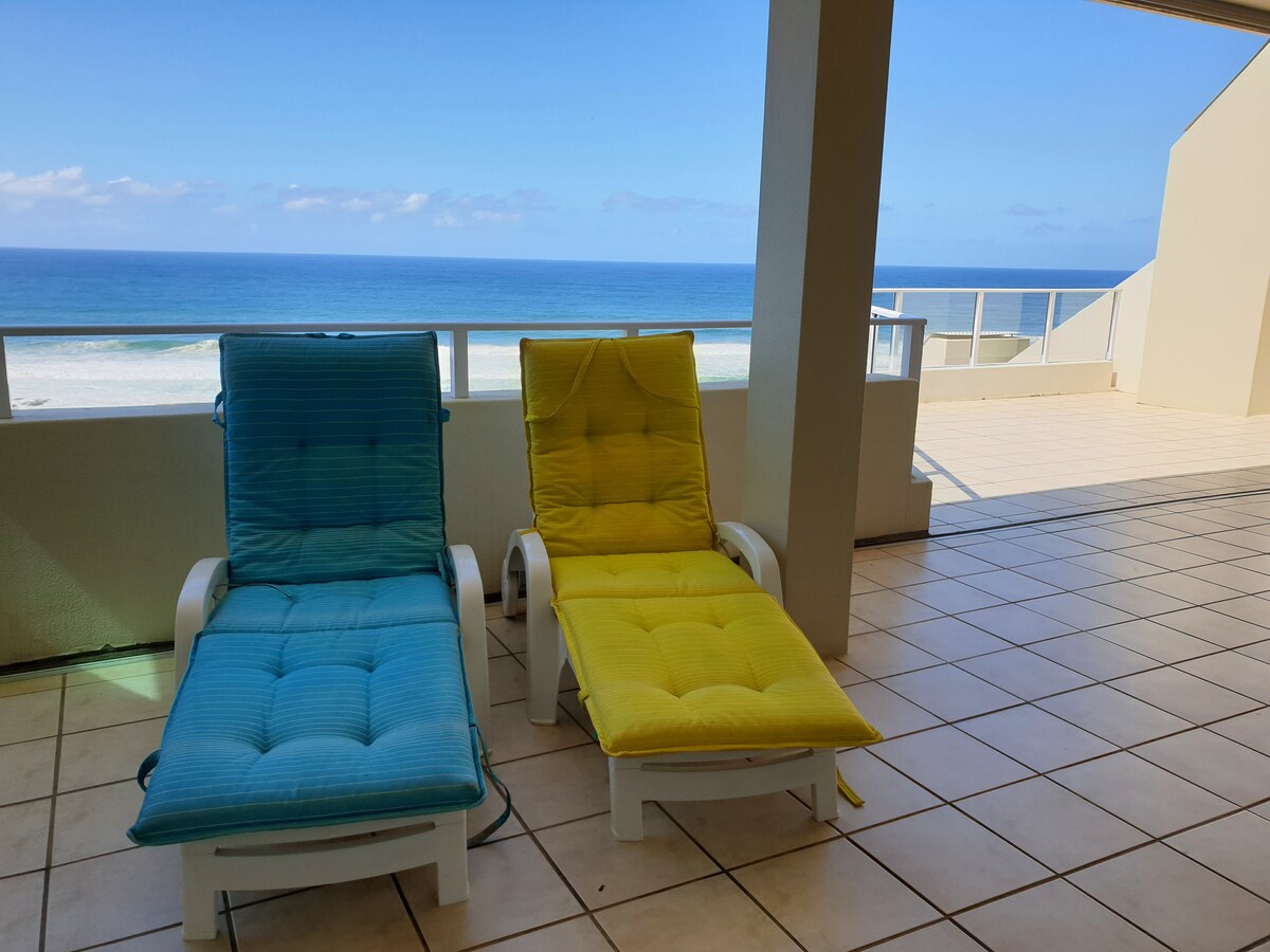 This spacious Penthouse with incredible 180 degrees sea views from its spacious covered patio is perfect for sipping sundowners and preparing meals on the gas braai. The apartment is only a short 5 minute walk to the very popular blue flag Lucien beach as well as convenient shops and restaurants. The unit comes with a fully fitted kitchen, 2 bathrooms and 3 bedrooms. The large outdoor entertainment patio is furnished with loungers and a family dining area. All 3 bedrooms are air-conditioned.