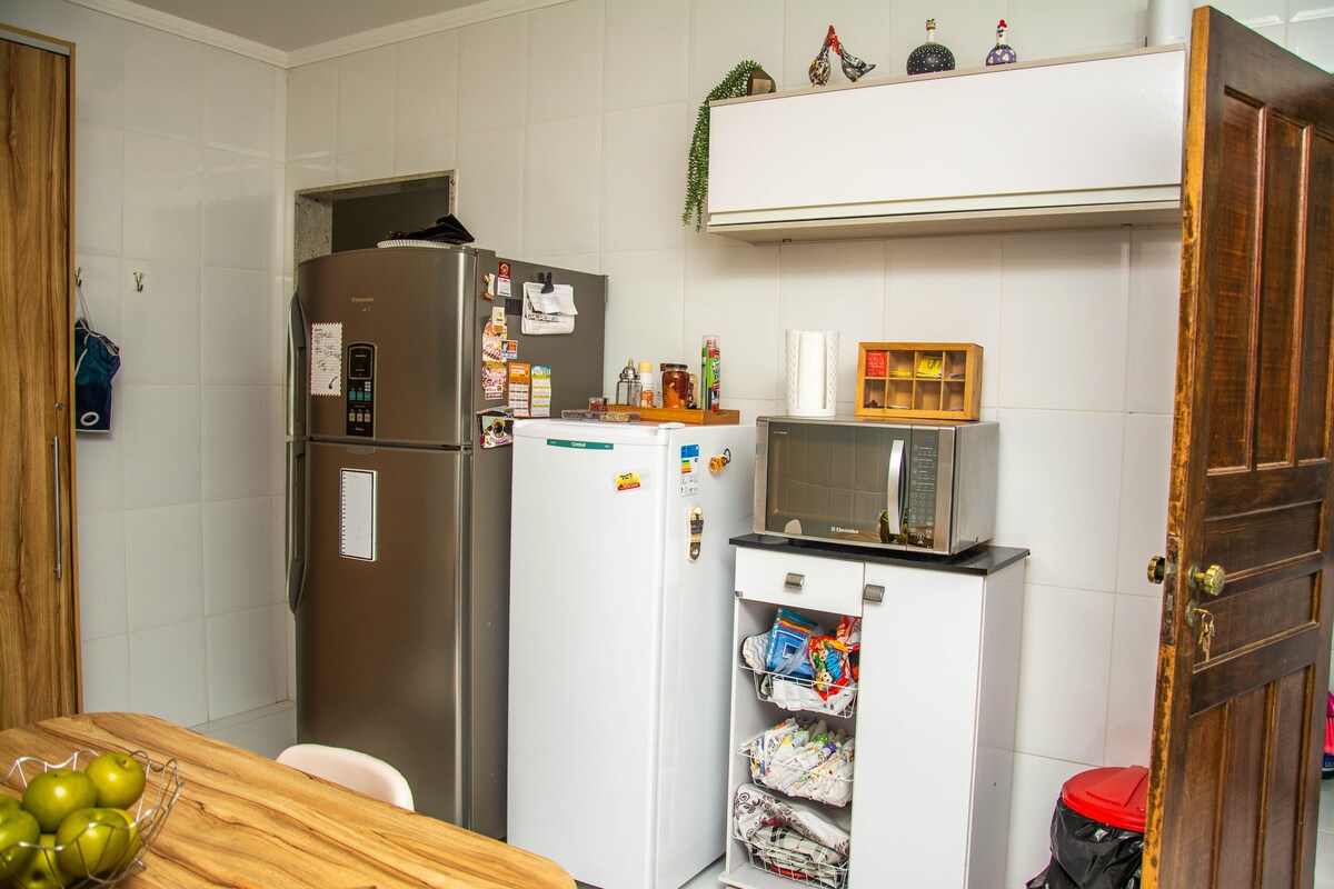 Ampla Casa ,位於平靜且沒有出口的街道上。 靠近海洋地區的海灘,車程20分鐘。 5間臥室、2間套房、電視和餐廳、4間浴室(適合老年人)、設備齊全的廚房、WiFi ; 擁有完全隱私的戶外區域:帶甲板的泳池、壓力淋浴間、燒烤、木製披薩烤箱、冷藏箱、lenheira、多功能球場。 兒童區域配有彈性牀、房屋、滑梯和秋千。 Varandão配有吊牀和攜帶式燒烤; 洗衣房、牀單和枕頭