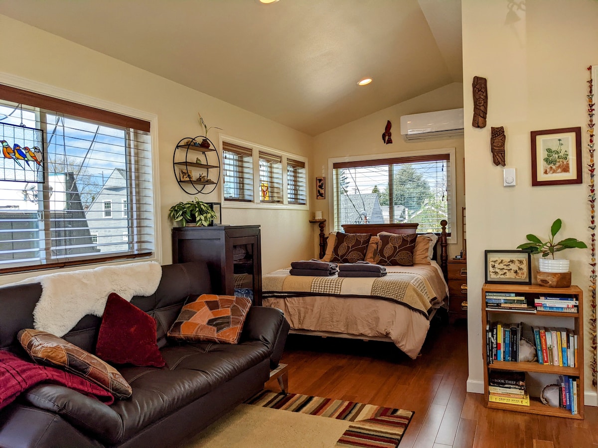 歡迎來到Raven's City Roost Studio Apt,這是為山地探險做好準備的完美家庭基地。 Baker,在忙碌的一天探索Bellingham景點或在Puget Sound周圍一日遊之間遠距工作的安靜地方後充電。 Raven's Roost是一個舒適、溫馨和安靜的地方,位於市中心,靠近設施,包括啤酒廠、餐廳和雜貨店。 位於巴士線旁,開車5分鐘或步行20-25分鐘即可抵達貝靈漢市中心。
