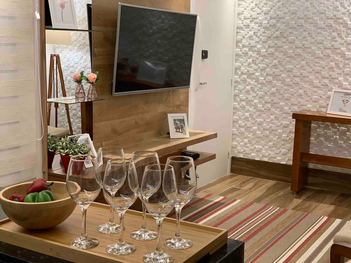 短期住宿,裝飾與圖片一樣,我們在同一複合體內有2個單位,最多可容納14人。 基本的家用餐具,供您烹飪,如攪拌機、酒杯、杯子、攪拌機、Nespresso咖啡機、洗衣機、牀上用品、2條浴袍和毛巾。 位置優越,公寓內有超市、沙龍、24小時保安,街區安靜。