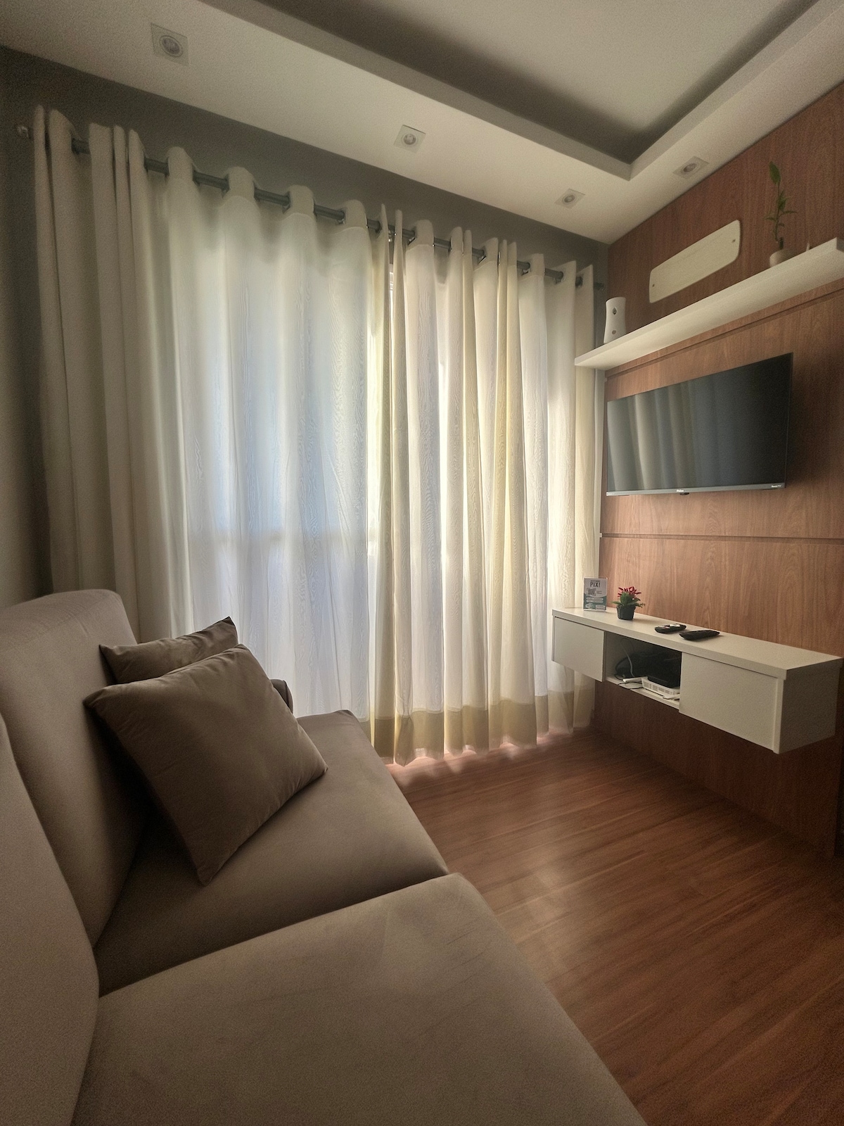 Apt completo com sala+sofá retrátil de jantar, 2 quartos, cozinha planejada, Alexa , móveis novos. Eletrodomésticos e utensílios, microondas, fogão adaptado grill, air fryer, lavadora, tv smart pacote básico, ferro de passar, ar condicionado, ventilador de teto, inclui Wi-Fi, fechadura eletrônica, incluso água, luz e gás. Iluminação: O apartamento é todo iluminado com luzes de led. 1 cama Queen lençóis 200 fios 100% Algodão e 2 cama Box solteiro.