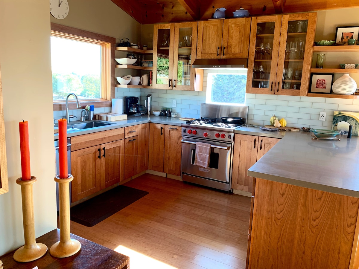 現代化且寬敞,配有玻璃門廊、高天花板和許多法式門、天窗和窗戶。 靠近城鎮,位於最好的區域,距離市中心不到一英里,可步行或騎我的巡洋艦自行車。 您一定會愛上這裡的景觀、地理位置、山羊、四處奔跑的鵪鶉和隔壁的美味咖啡廳。我們剛剛失去了我們的迷你馬7/27 :(我們有16年了,如果你計劃與他見面,我們感到抱歉,這對我們來說是一個悲傷的損失。