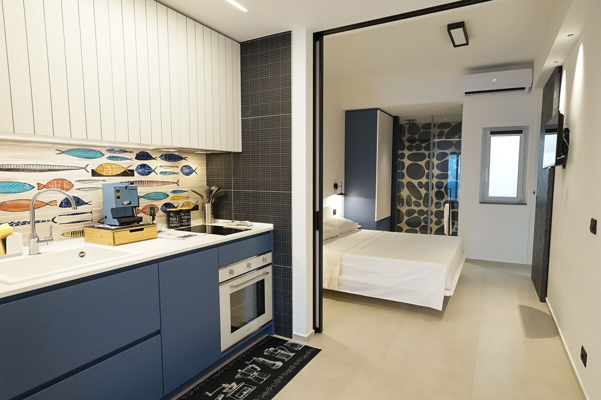 nuovo appartamento, luminoso,splendida vista mare, arredato con cura per rendere piacevole il soggiorno agli ospiti. È composto di un cucina soggiorno da cui si accede ad un ampio balcone vista mare. Nel soggiorno vi è anche un ampio divano letto. l'immobile gode di ottima esposizione ampissima vista mare. La camera da letto, gode di ampia vista mare. Piccola lavanderia e un bagno molto funzionale con doccia. Un posto auto in cortile. disponibile anche culla da campeggio per bimbi