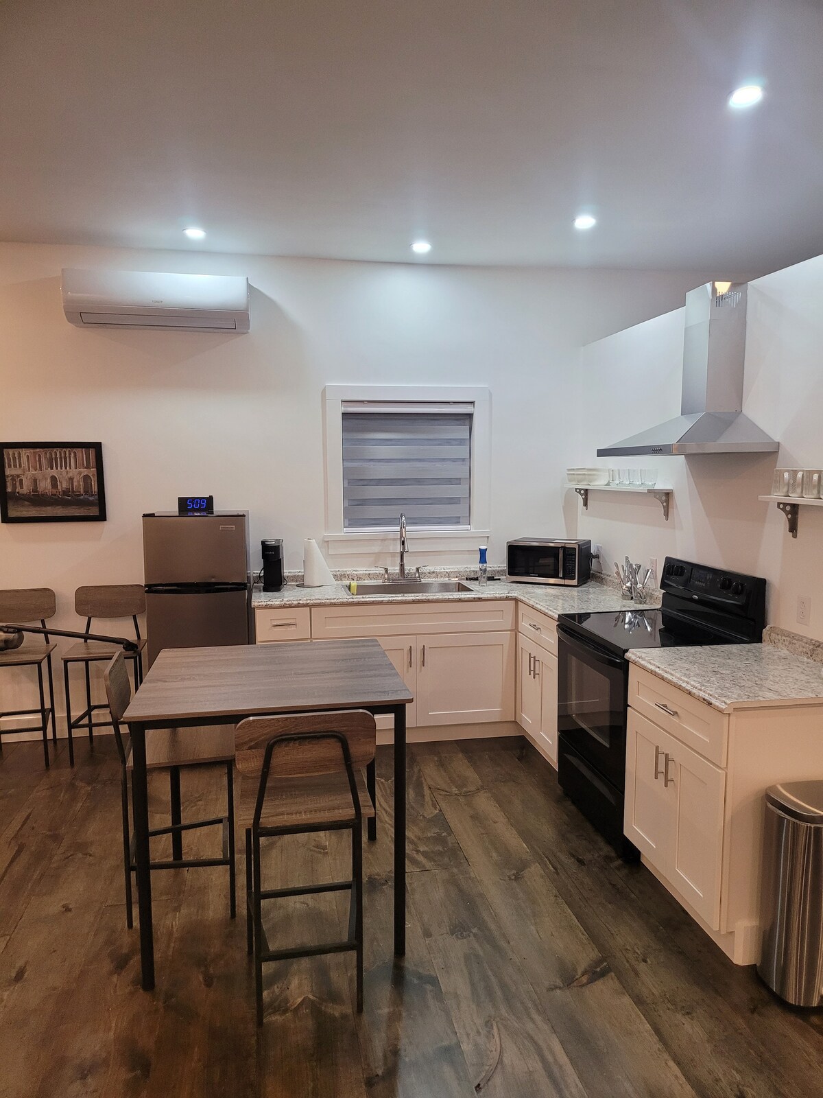 在這間舒適的單臥室公寓中放鬆身心,配有加大雙人床、全功能廚房和舒適的起居空間,配有沙發床和帶輪矮床,可提供額外的睡眠空間。 公寓還包括一間全尺寸浴室,配有淋浴和浴缸組合。 開放式佈局提供了完美的休息、用餐和充電的地方。 無論您是來短途旅行還是長期住宿,這間公寓都提供簡單、時尚和舒適的空間。