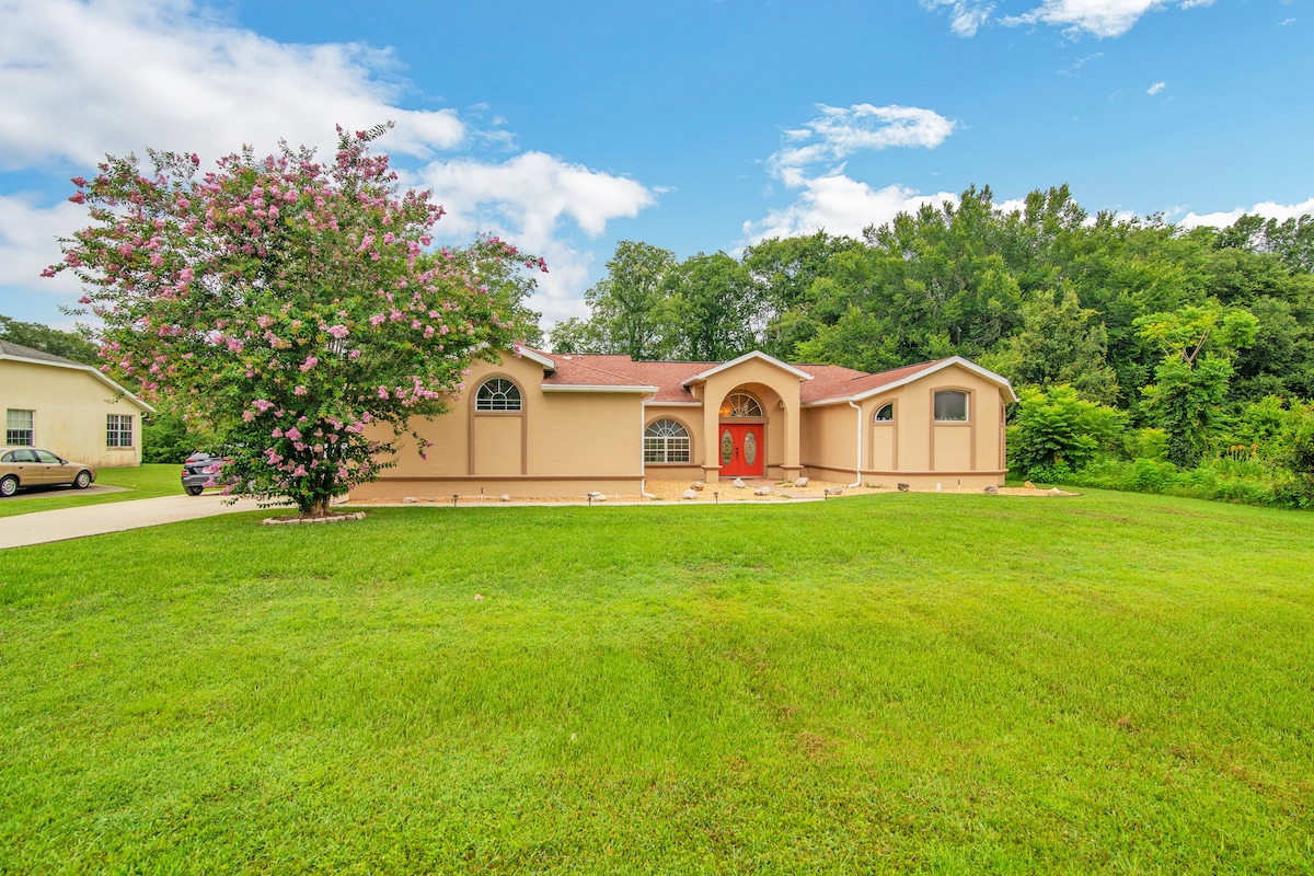 帶全家人來到這個很棒且令人驚嘆的地方,有很多空間。 房源設有圍欄後院、木炭燒烤架,距離商店、餐廳、I-75僅10分鐘路程,其他主要道路也很近 值得期待的事項: 世界馬術中心:20英里 佛羅裏達馬公園: 6英裏 彩虹河:25分鐘。 蓋恩斯維爾: 45分鐘。 Tampa Premium Outlets : 1小時 迪士尼世界/環球影城:1小時。 奧蘭多國際機場: 1小時15分鐘。