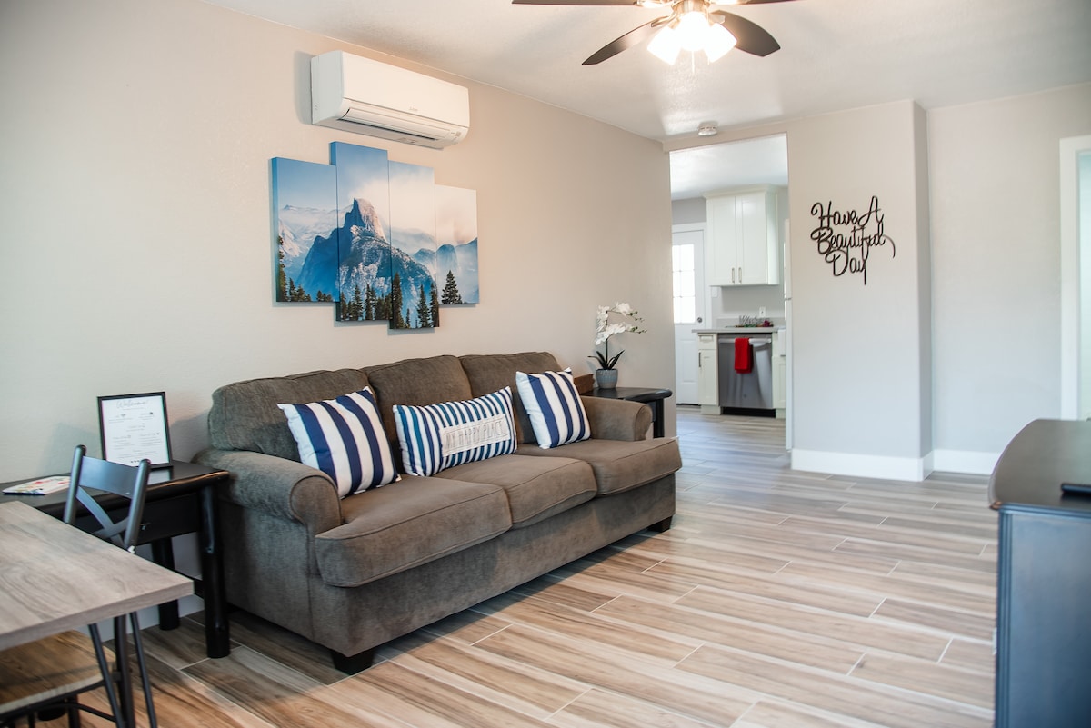 享受這個位於Mariposa鎮的舒適房源,步行即可抵達遊客中心。 全新現代化改造-我們的單位配備了您度假所需的一切。 內有洗衣房,甚至還有嬰兒遊戲床。 備品充足,隨時可成為您史詩般的旅程中的踏腳石!距離優勝美地入口30分鐘路程,距離歷史悠久的馬裏波薩市中心僅幾步之遙。 相信我們,你會喜歡這個現代化和一塵不染的出租屋! 房源可供四名成人和一名嬰兒舒適入住。