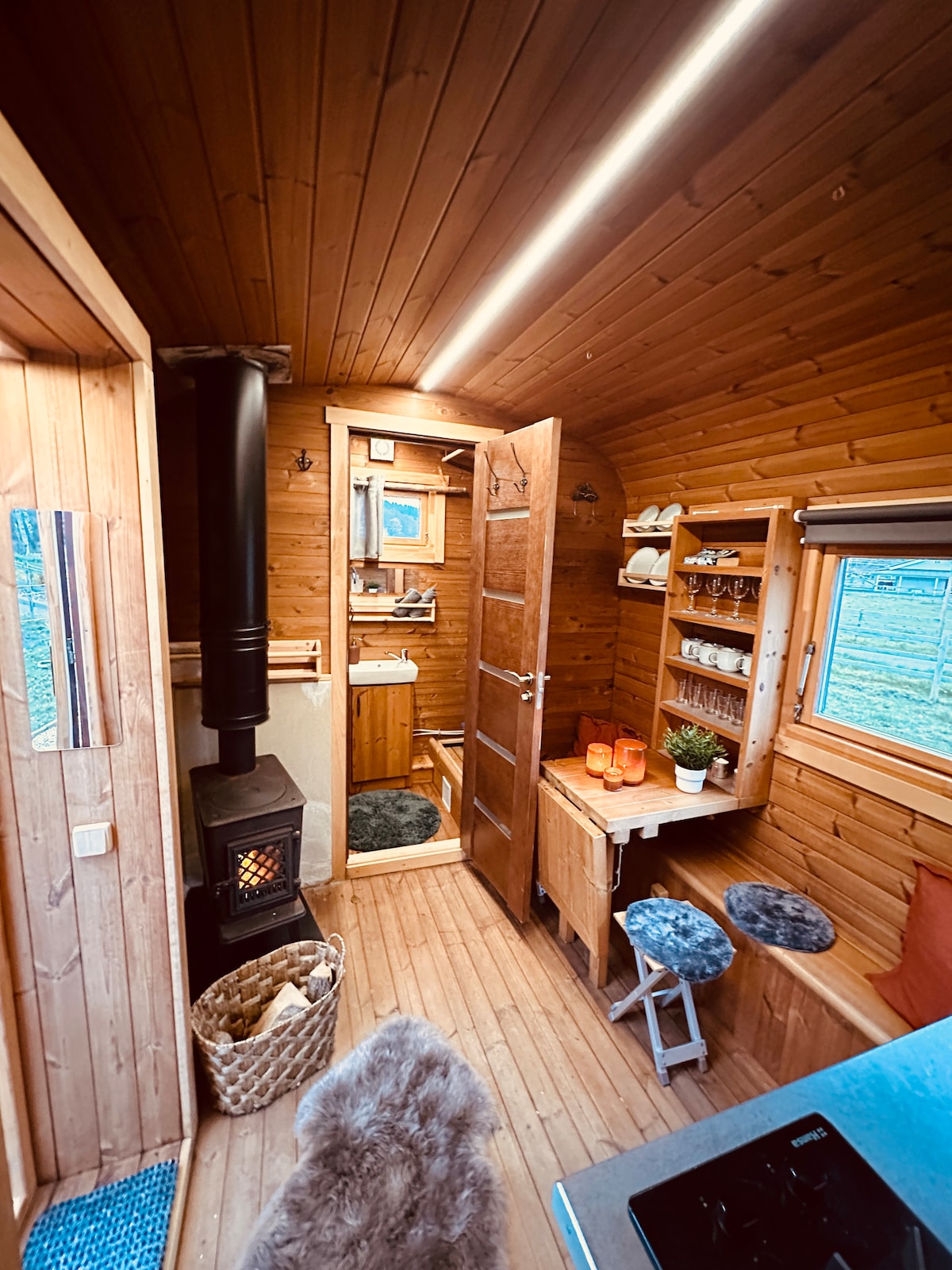 歡迎來到我們位於大自然中的迷人小屋! 在這裡,您可以享受寧靜放鬆的住宿體驗,周圍有翠綠的森林、美麗的景觀和湖泊。小屋為想要擺脫城市壓力並體驗鄉村寧靜的人提供了完美的度假勝地。 小屋裝潢舒適,採用開放式設計。小屋內有一個小廚房,配備了烹飪所需的一切。床位在閣樓上,浴室新翻修,配有淋浴間和馬桶。