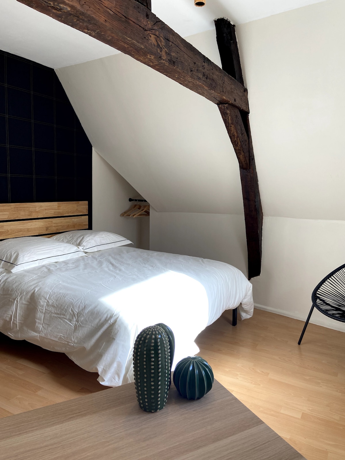 A timeless setting to spend a vacation or come to work (wi-fi available)! Our 135m² house, carefully and elegantly decorated, offers you a beautiful living space with a living room, dining area, kitchen, and sunny outdoor space. On the first floor, there are two spacious bedrooms, including a master suite with a bathroom. On the second floor, a bedroom and a bathroom. Many amenities are provided for your comfort. Free parking space. A 10-minute walk from the train station and city center.