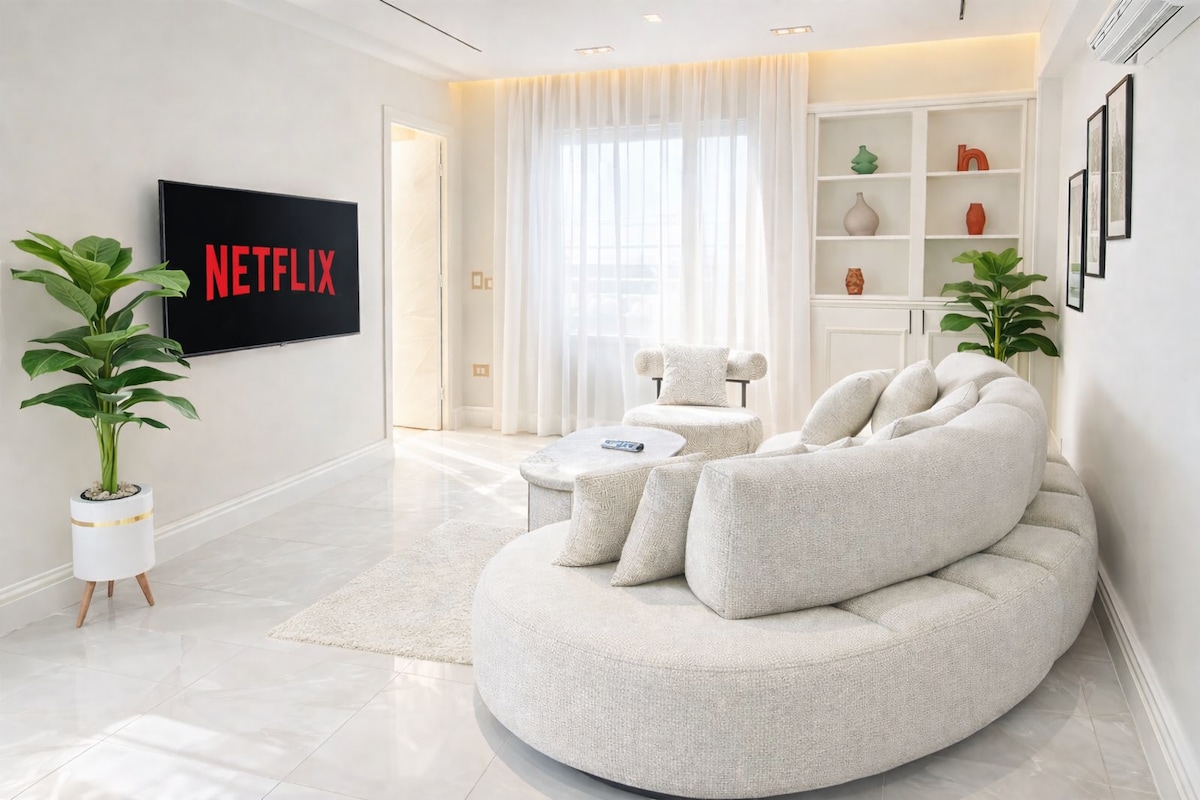 探索我們位於金門大樓的 1 間臥室寶石 - 距離 Maadi 5 分鐘,距離新開羅和納斯爾城 10 分鐘,距離開羅機場和赫利奧波利斯 15 分鐘。設備齊全的美式廚房,時尚的現代和波西米亞氛圍。享受花園景觀、24 小時全天候保全服務,以及咖啡廳、餐廳、家樂福超市甚至醫院等現場設施。配備 65 吋智慧電視,提供串流服務,並透過快速 Wi-Fi 保持聯繫。您的開羅探險之旅從這裡開始!