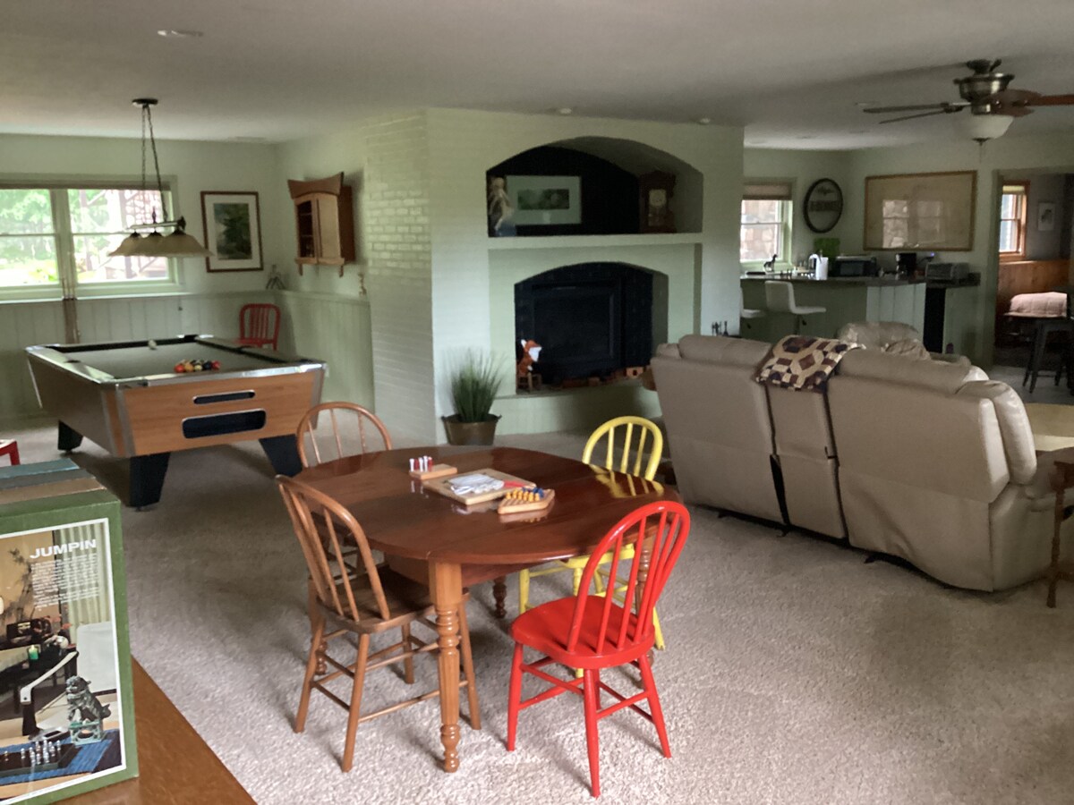 您會將這座湖畔的3間臥室2間浴室房屋視為您的家。夏天可以在甲板上進行水上運動、烤肉和用餐,並欣賞湖面上的日落。冬季月份包括從前門進入雪地摩托車小徑、附近的下坡和越野滑雪場和雪鞋。在一天結束時,在噼啪作響的火邊取暖。春天帶來一日遊,前往美麗的瀑布。秋天會讓人想到狩獵。有許多樹林區域可供狩獵鳥類和鹿。