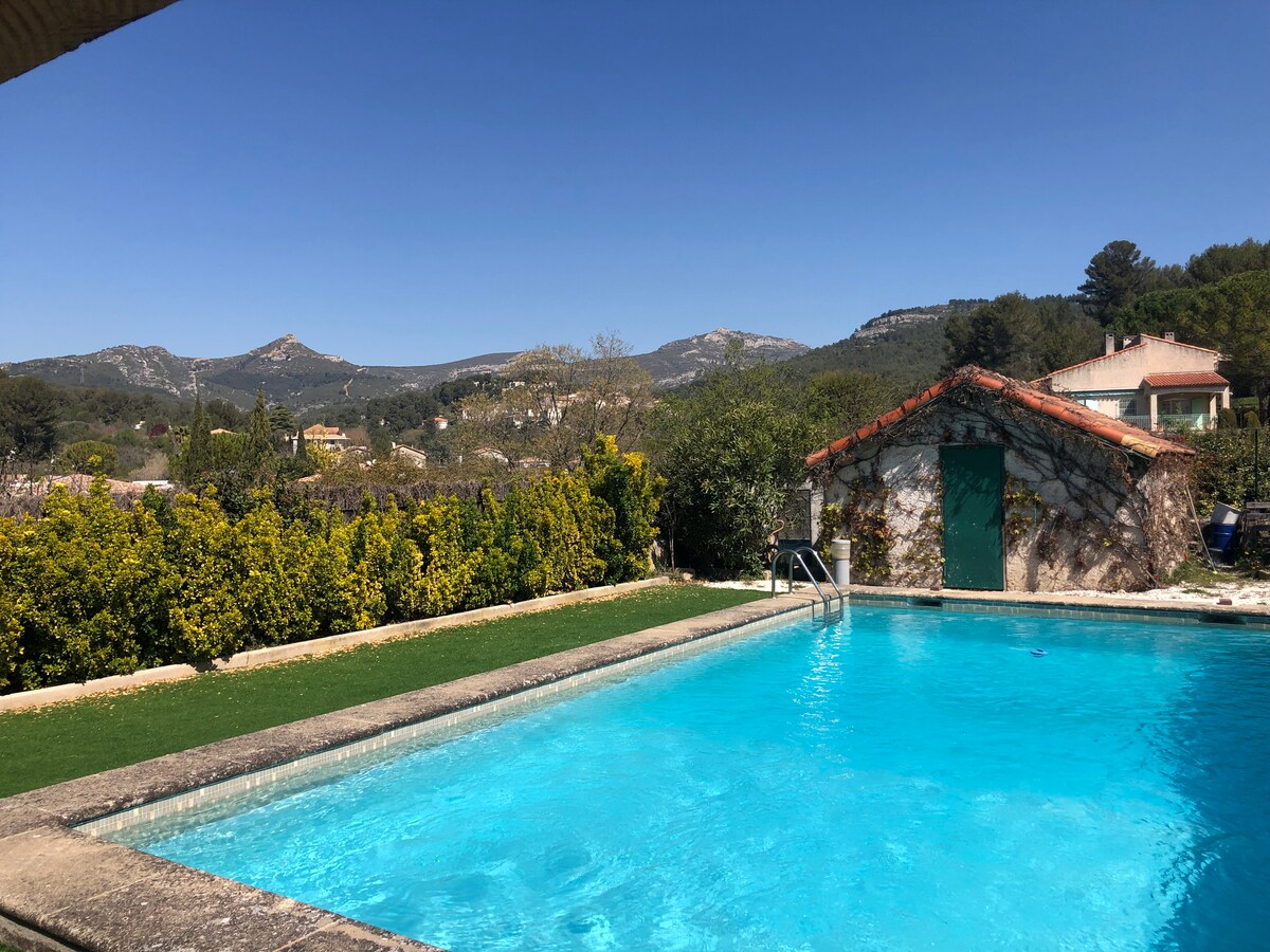靠近卡西斯獨立30平方公尺單間公寓,靠近市中心。 私人露臺,可通往泳池和未加熱(太陽能蓋)。 經過翻新,可欣賞花園景觀,安靜。 配有Bultex床墊的沙發床;設備精良的廚房(烤箱、爐子、冰箱、洗碗機、Nespresso咖啡機、烤麵包機、水壺... )。 配有淋浴間的浴室。