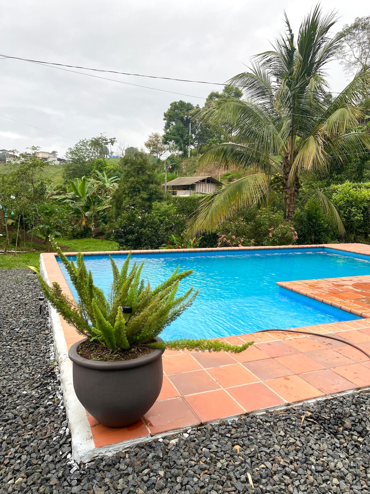 Finca privada en la zona cafetera de Caldas, ideal para descansar. Cuenta con piscina, jacuzzi y 5 habitaciones. Ubicada a 10 minutos de Santágueda y a 20 minutos de Chinchiná. Posibilidad de contratar empleada (sujeto a disponibilidad). La casa y las áreas húmedas son de uso exclusivo y para tu seguridad cuentan con cerramiento perimetral.