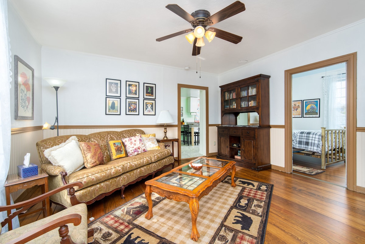 From your own private brick patio & secret garden, you will be welcomed inside to polished wood floors, deep soak Jacuzzi tub/ hand-held European style shower, comply QUEEN bed, quality linens, everything clean to a 't'. We are Self-Catered but with lite breakfast items & snacks available. Better yet, a short 2 block walk & you can explore Old Town shops & eateries. Another accommodation in the same locations offers a full kitchen & can accommodate friends (The Dogwood, Old Town Cottage)
