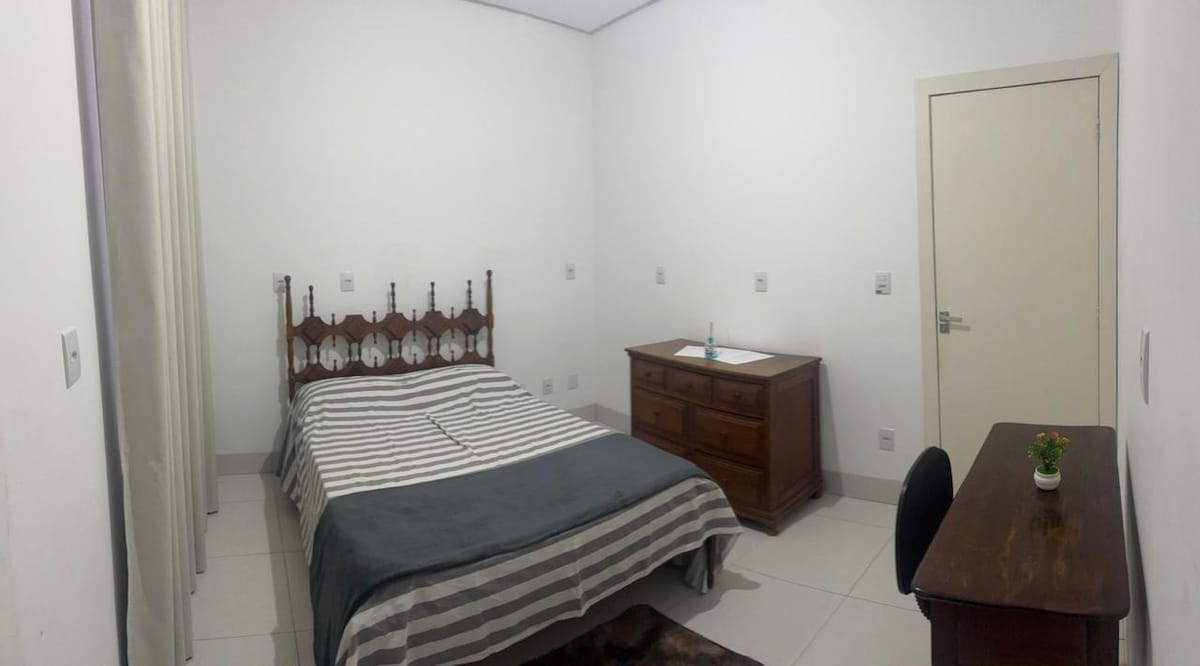 Espaço totalmente privativo, contém quarto, copa e banheiro. Entrada individual. Comodidades: cama casal, ar condicionado, cômoda, mesa, cadeira, frigobar, tanque, lava e seca, utensílios básicos de cozinha, espelho, cortina, fogão, botijão, chuveiro, filtro de água, microondas e outros. Com excelente localização e fácil acesso a tudo o que precisar, próximo ao banco Sicoob, hospital, supermercado, posto de combustível e lanchonete. Estacionamento gratuito na rua.