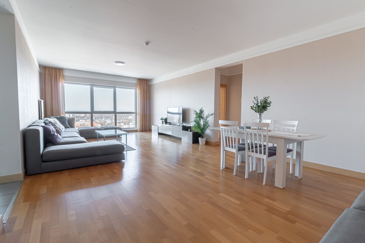 這間時尚寬敞的公寓(67 平方公尺)位於 Panorama Plaza 住宅區,提供免費停車位。位於機場和里加舊市中心之間,開車約10分鐘,非常方便。距離尤爾馬拉(Jurmala)同樣距離,有美麗的海灘和舒適的咖啡館。 步行5分鐘即可抵達「Spice」購物中心,您可以在這裡度過美好時光,為自己帶來好處,並取悅您的孩子。 步行15分鐘即可抵達美國大使館。總之,您不會後悔的!