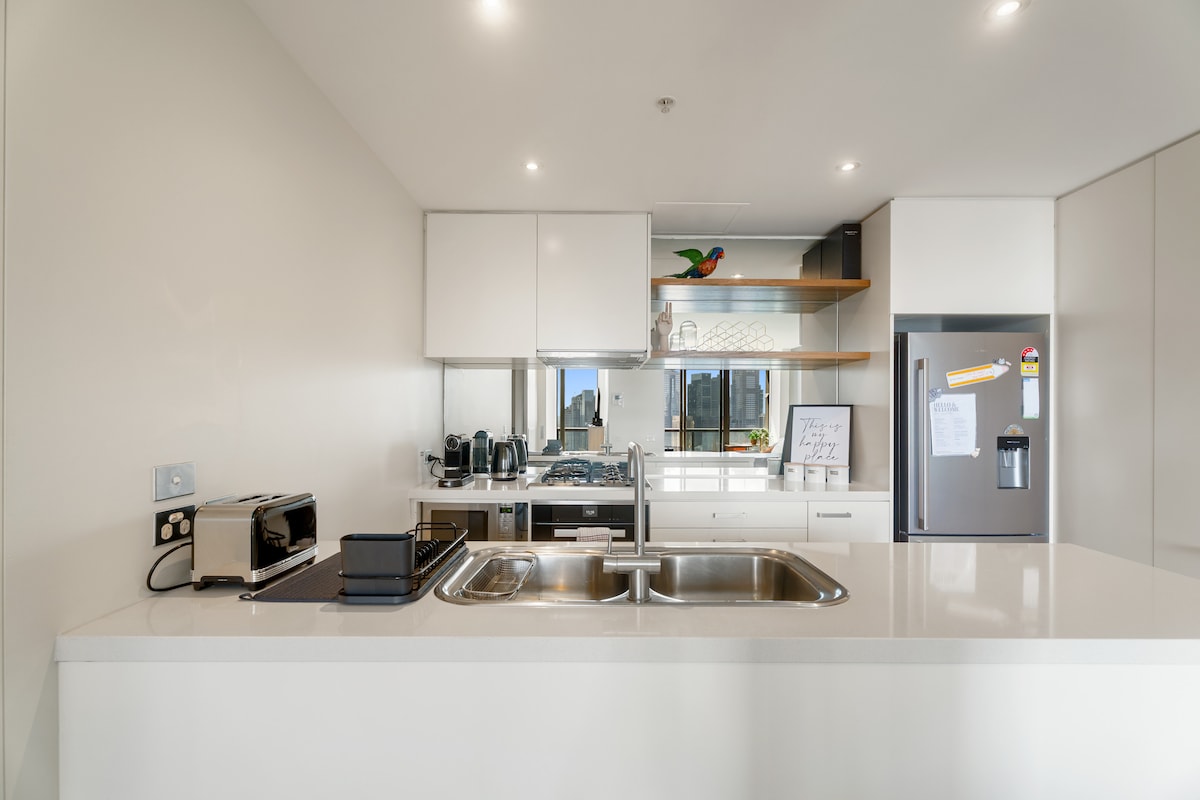 彈性提前入住和延遲退房——您可以視需要延遲退房! 迷人的城市景觀,陽臺是欣賞新年煙火的完美去處。 位於市中心,就在南十字站對面,走出火車站或 Skye 巴士站就能抵達。 對面有 DFO 和 Coles 超市,搭乘電車一小段路就能到皇冠賭場 (Crown Casino)。 抵達時提供一瓶葡萄酒和點心。 世界一流的度假村式設施,包括 25 公尺健身泳池、設備齊全的健身房、桑拿房和攀岩牆。