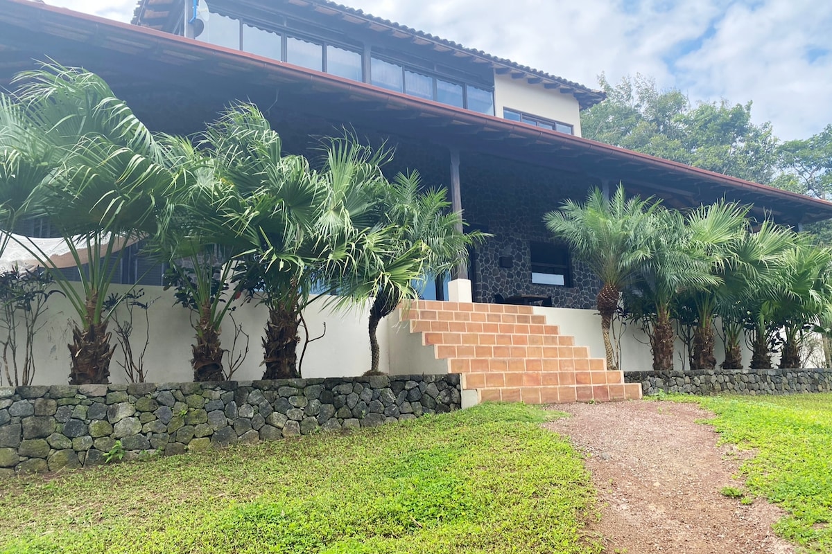 漂亮的「設備齊全」、現代化的房子(80 M2 + 75 M2 陽台)(光纖網路高達 100mbps)冷氣休息室和一間臥室 按摩、烹飪、熨衣、保姆、洗衣服務...小費! NETFLIX 充足的隱私。令人驚嘆的4000平方公尺私人區域 非常安全的環境 「免費」每週4小時客房清潔 在美麗的綠色3.25公頃的平坦土地上,面向Mombacho火山。10分鐘 距離Diriomo村5分鐘,距離Diría (Laguna Apoyo)的Mirador 10分鐘,距離Granada 20分鐘