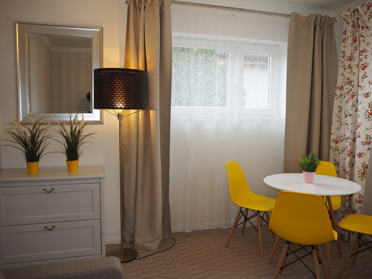 非常漂亮的公寓。有廚房、客廳、臥室、浴室和陽台。 大樓後面有一個小森林和一個漂亮的公園。 距離公寓約200公尺處有一個商場和一個電影院。 有地下停車場,有專屬位置供房客使用。 為了讓房客舒適,廚房裡有基本的廚房用品,如咖啡、茶、糖、鹽、油、香料等... 晚上22: 00-06: 00之間保持安靜,因此不適合舉辦派對。