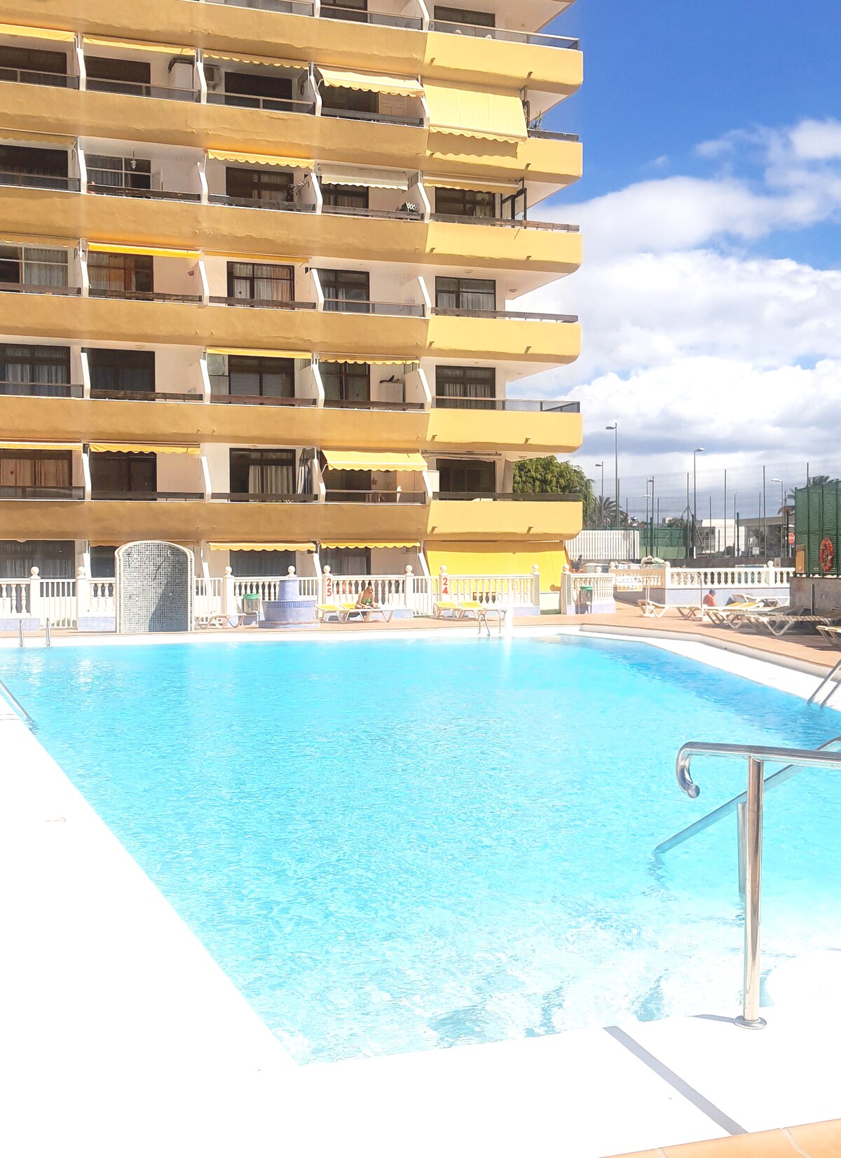 舒適的公寓,地理位置極佳,位於Playa del Inglés ,步行兩分鐘即可抵達海灘。 房子有大型客廳/餐廳(配有空調)、寬敞的臥室和露臺-花園,可欣賞海灘和馬斯帕洛馬斯沙丘的壯麗景色。 該建築羣有兩個社區泳池、俯瞰拉斯杜納斯的日光浴室、一個網球場和附近所有必要的設備與服務(超市、餐廳、商店)