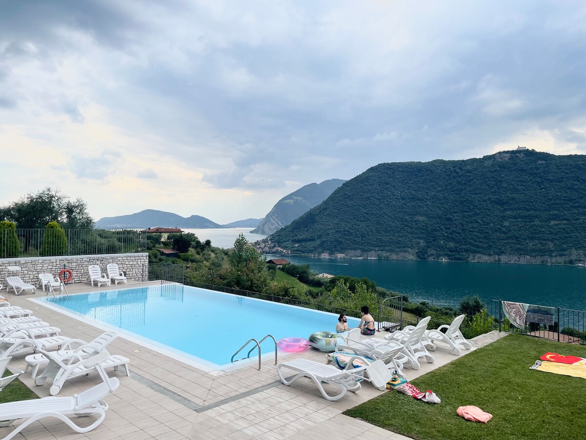 浪漫的公寓位於第一座山丘上,可欣賞伊塞奧湖和伊索拉山的美景,四周綠意盎然,陽光充足,客廳配有沙發床和廚房,雙人臥室,浴室,家具齊全,設備齊全,寬敞的露臺,公共游泳池(5月15日開放,9月30日關閉)。需要開車出行 請檢查入住時間,如果不兼容,請在預訂前向房東提出個人可用性請求 谢谢