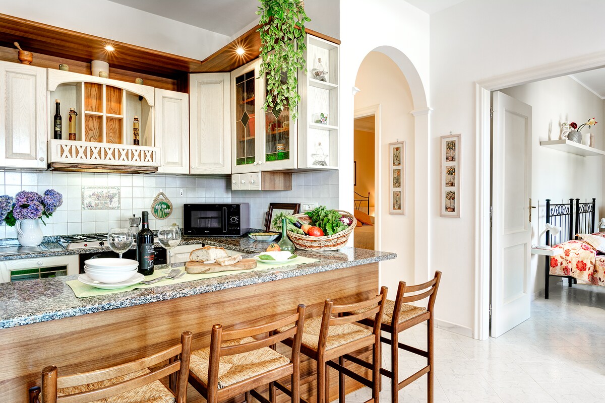 This Stylish Sorrento Apartment is located in the heart of the city beside Piazza Tasso on Corso Italia and in close distance to the main transport links. Recently renovated and restored this 17th Century apartment has a large and spacious open plan living space and can accommodate up to 8 guests, complete with 2 Bedrooms, 2 Bathrooms, Kitchen, Living Room and Balconies where you can enjoy the view of Corso Italia, all cleaned and sanitised to a very high standard by our specialised team.