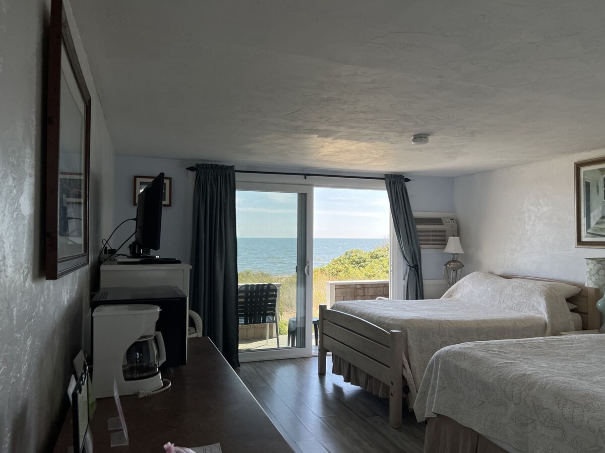 迷人的房間,配有1張雙人牀和1張單人牀。 沒有海景,但距離汽車旅館的私人海灘僅幾步之遙。 包括獨立浴室、迷你冰箱、烤麵包機、咖啡壺、廚房用具、微波爐、空調、有線電視和WiFi。 提供歐陸式早餐。 這是一間適合寵物入住的房間-只有乖巧的寵物。 無重量限制。它位於二樓,只能通過樓梯進入。