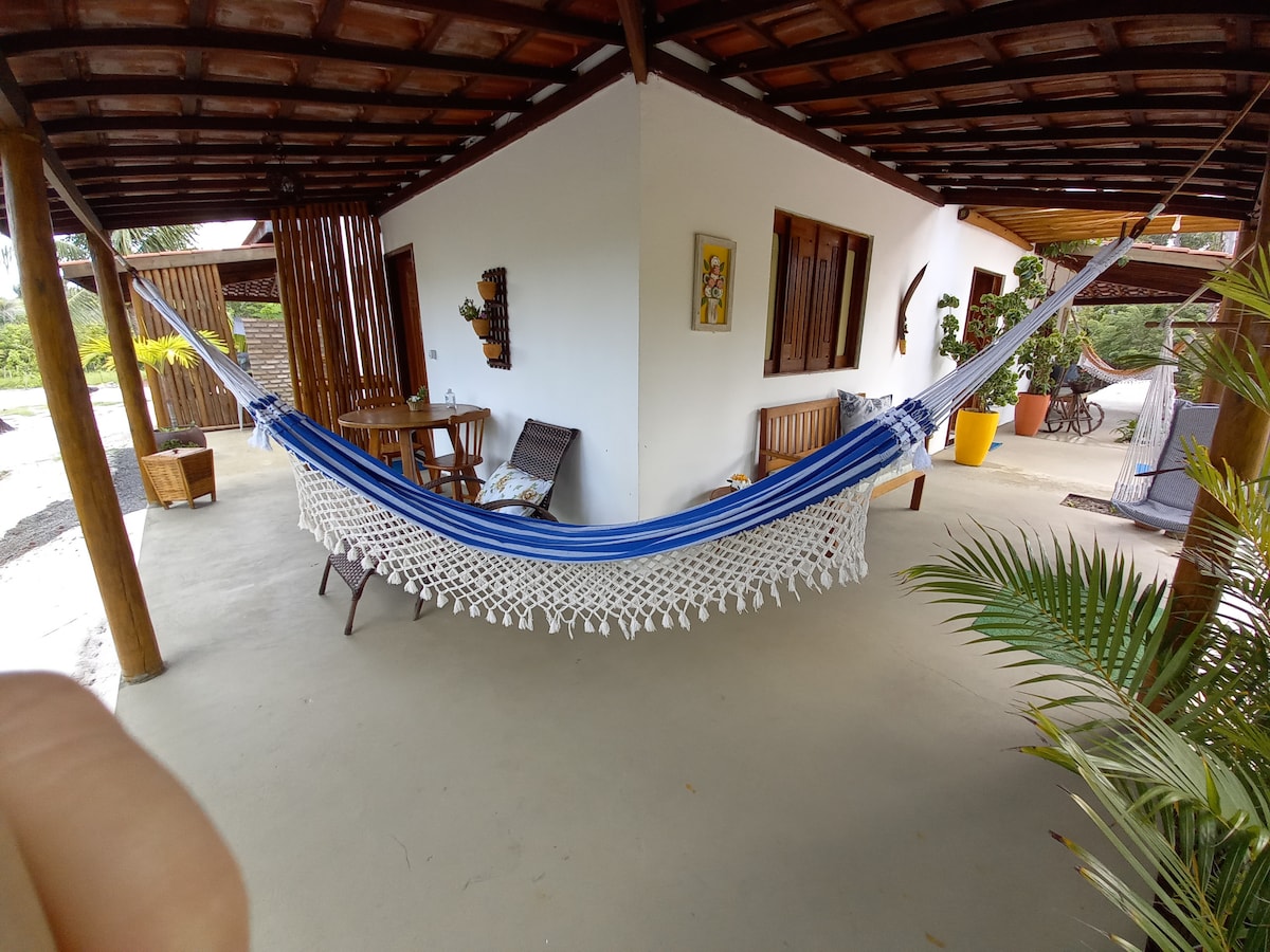 舒適的套房,最多可容納4人,距離海灘1.0公裏,配備電視和空調、迷你吧、Wi-Fi、獨立浴室、共用戶外服務區域、陽臺上的吊牀、放鬆的小泳池、雞、海龜讓兒童分心並聆聽動物的聲音。 非常適合喜歡與大自然共處的人士。