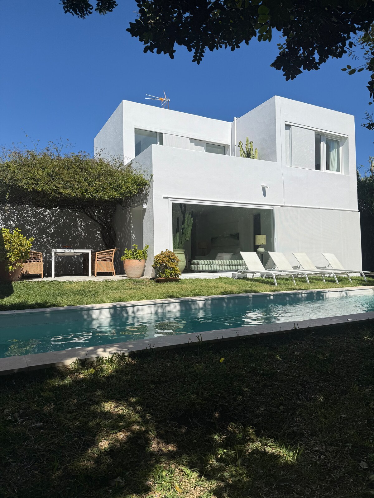Beautiful villa near the beach in the Roche, Conil (Cadiz) We rent all year round (for fortnights in July and August) and can accommodate up to 8 people. There is WiFi Internet and Netflix Plus, 2 smart TVs, one 70'' screen. The house, 150 m2 (200 including terraces) and 600 m2 of garden, is a typical Andalusian tile construction totally and perfectly equipped and decorated with style, for maximum comfort and enjoyment. It is only 50 meters from the beach. So close that you can go barefoot.