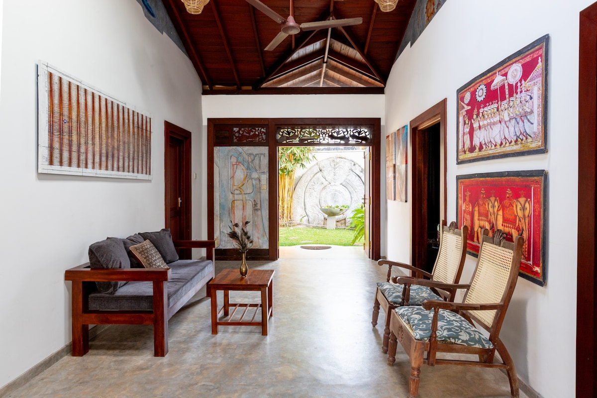 Art House is a charming, traditional villa just 150m from the beach, Parrot Rock, and Coconut Tree Hill. It features three bright double bedrooms, an artist’s atelier, cozy lounge, two bathrooms, and a fully equipped kitchen - all infused with Sri Lankan character through vibrant paintings and frescoes. Step outside to a tropical garden with dining area, outdoor kitchen, and barbecue. The villa sits on a quiet lane between the ocean and the jungle, offering peace, beauty, and local charm.