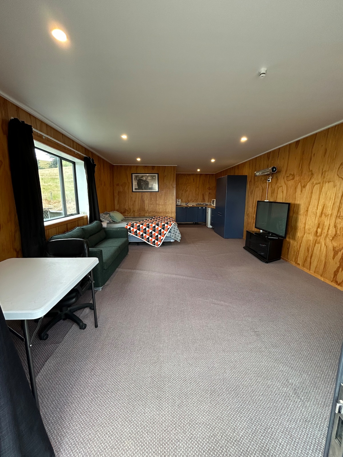 We have a cosy cabin (studio style) opposite our house with its own shower and toilet and basic cooking facilities (an induction hotplate, small fridge, microwave, electric jug and toaster). 5 minutes walk to river and beach. CELLPHONE COVERAGE IS THROUGH VODAFONE OR 2 DEGREES ONLY