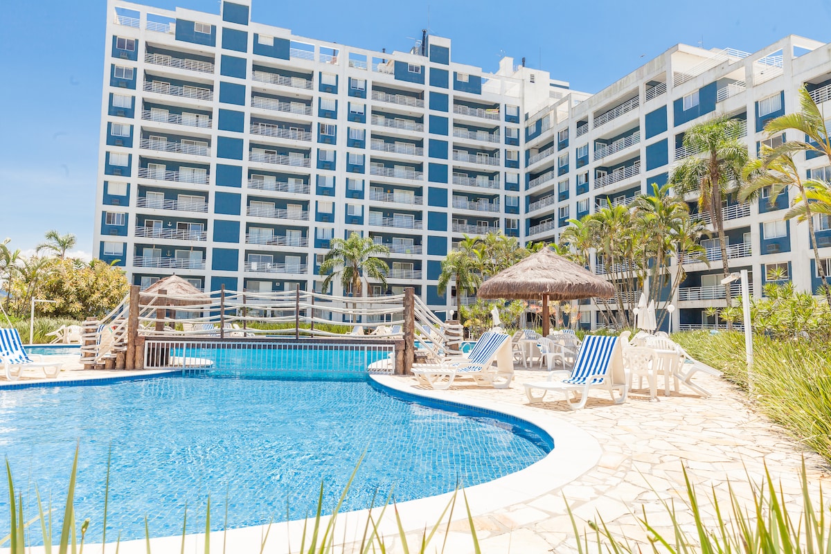 公寓包括一個大客廳、40英寸電視、Wi-Fi、桌上遊戲、設備齊全的廚房、微波爐、咖啡機、保溫瓶、燒烤設備、燒烤用具、洗衣房、洗衣機、兩間臥室,其中一間帶套房,一間在走廊上的浴房、空調、兩張雙人床、單人床墊(可用)、床單和浴巾(根據要求並支付每人35.00雷亞爾的額外費用)、沙灘椅、遮陽傘和私人停車位。