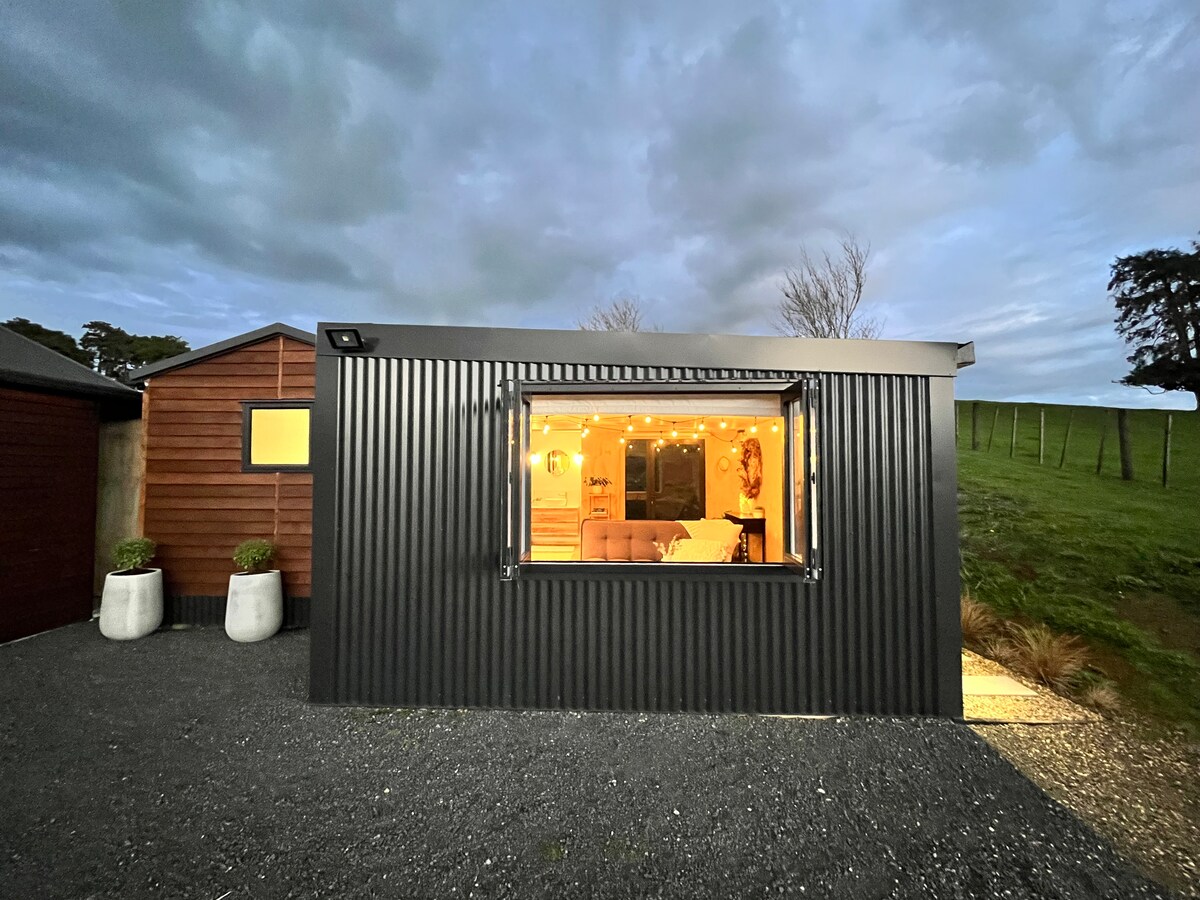 Reconnect with nature in a tiny house surrounded by native bush in a calm and inspiring space overlooking the Tasman sea and just above the world class surf breaks of Indicators and Whale Bay. On the property we have a number of completely unique structures spaced apart in the bush to give maximum privacy. All are designed and positioned to make the most of the surrounding bush and ocean below. There is a large lawn area for guests to enjoy and a beautiful outdoor hot water shower.
