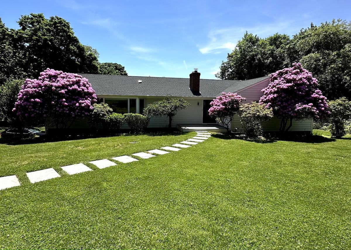 完美的度假勝地!在長島海灣上日出時醒來! 從紐約到羅德島的70英尺窗戶可欣賞全景海濱景觀。 安靜、私密、更新的房源,不是小屋: > 2200平方英尺,單層3B/3B , +額外低層步行/辦公室。 主牀雙人淋浴間/按摩浴缸可俯瞰水景! 多個海濱甲板。100英尺的花崗巖海岸線,步行即可抵達附近的沙灘。 遊泳、釣魚、閱讀書籍或觀看帆船經過! (不適合兒童/寵物/活動入住。)