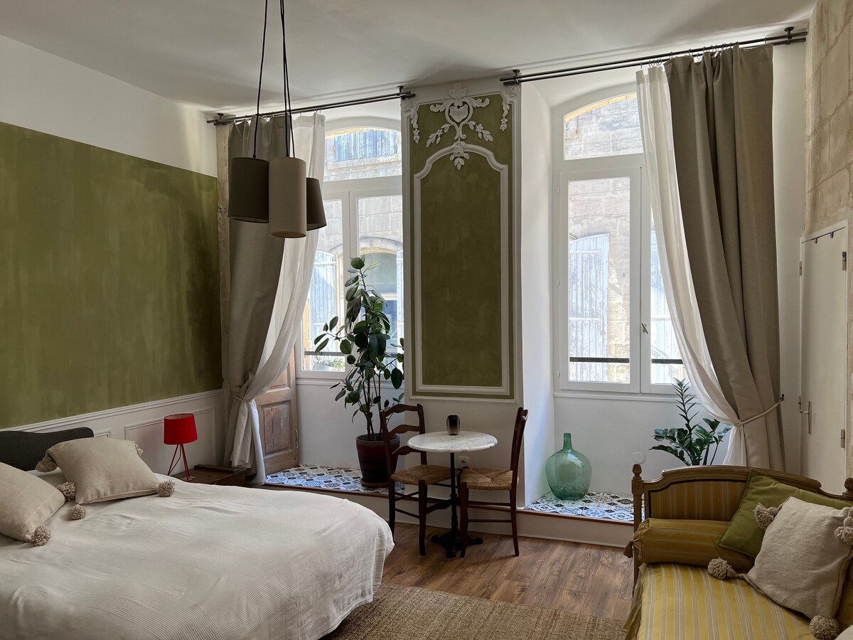 臥室位於阿爾勒老城中心,步行1分鐘即可抵達Foundation V. Gogh、論壇和風景如畫的Roquette區,臥室設備齊全且獨立,是探索阿爾勒的完美起居空間。