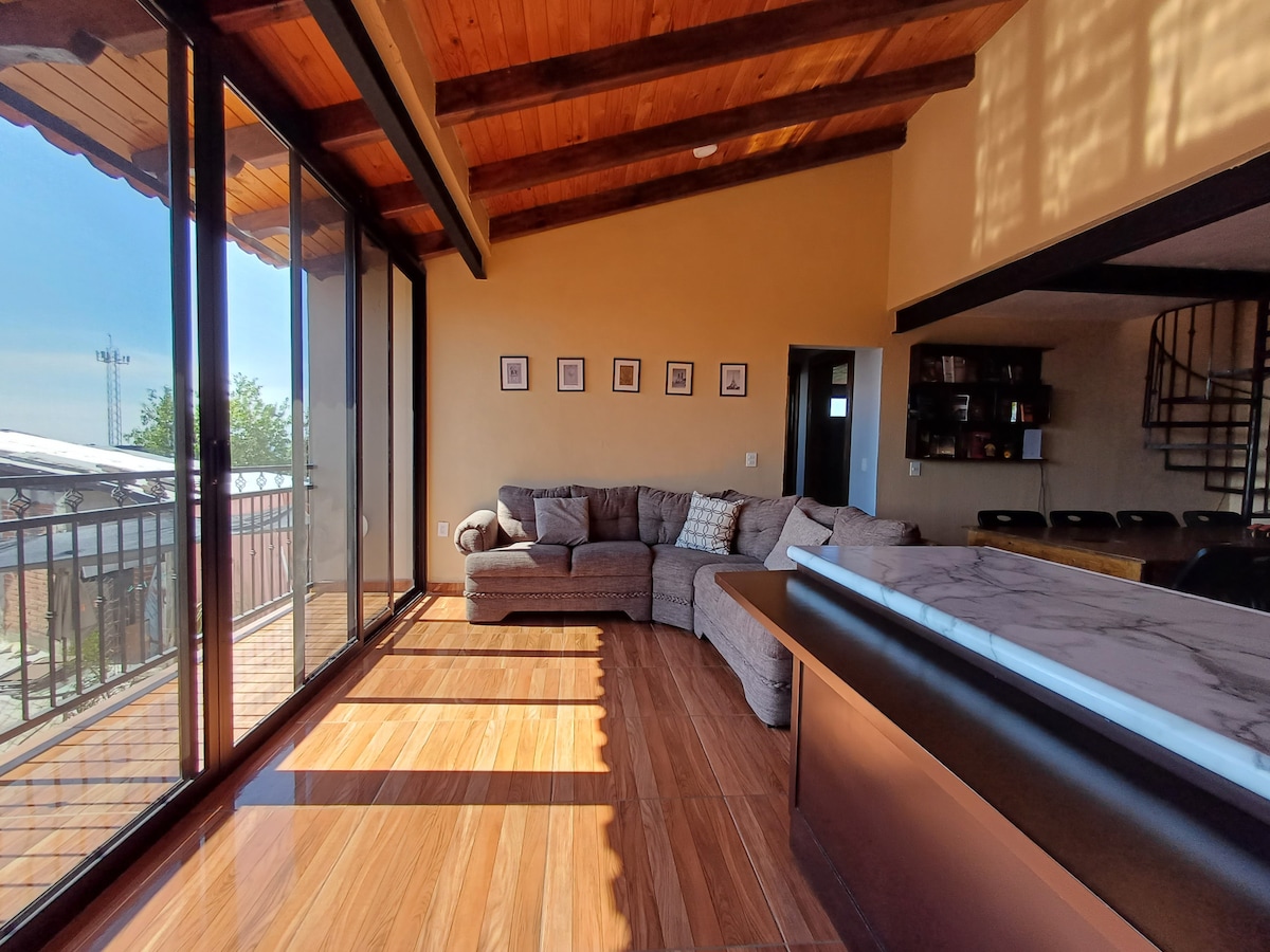 這間公寓位於市中心地區的2do piso ,靠近村莊出口,感覺像在鄉間。 它有1張牀、1張沙發牀、1個按摩浴池和烤肉。 步行8分鐘即可抵達廣場,前面有一家商店, 4個街區外有一家oxxo。