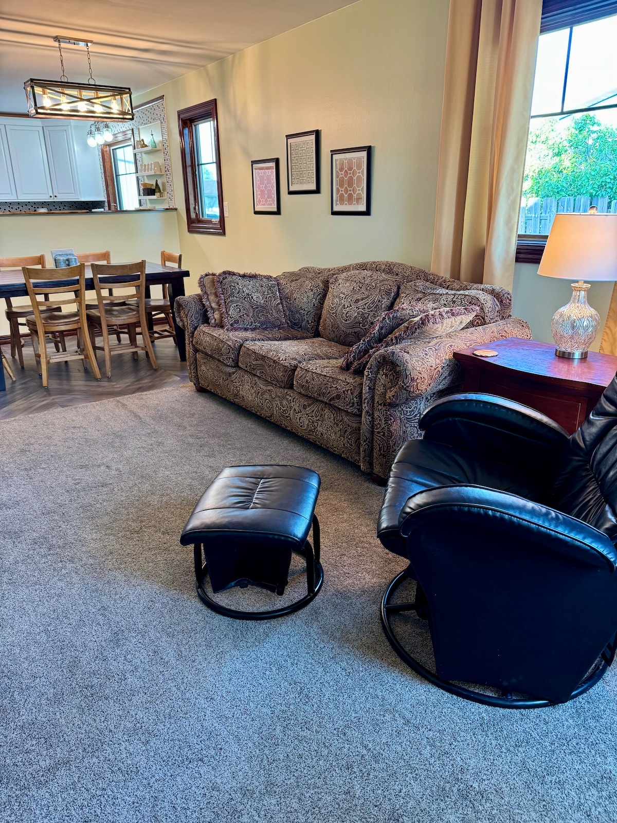 入住這間位處中心地段卻安靜的房源,讓自己的旅程輕鬆無負擔。 非常適合獵人和/或家庭。 配備齊全的廚房、舒適的起居/用餐區域、3間配備全新床墊的臥室、更新的浴室以及洗衣機和烘乾機。