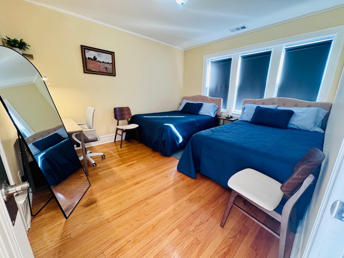 Enjoy a fully renovated first-floor 2-bedroom apartment on a peaceful, tree-lined street. Clean, modern, and designed for comfort and tranquility. Steps from dining and shopping, with easy access to the Metra, CTA Pink Line, and direct bus to Midway. Downtown Chicago is 20 minutes away; the United Center and Soldier Field just 15 minutes. A stylish, private retreat combining luxury, comfort, and convenience.