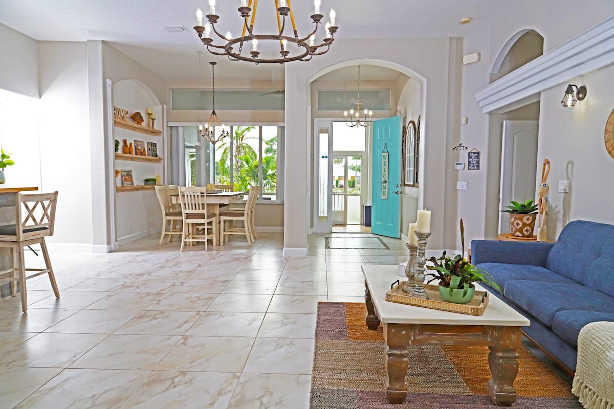 ~熱帶3Br/2Ba ~溫水/冷卻泳池房源 距離印第安河( Indian River )、塞巴斯蒂安灣( Sebastian Inlet )、船隻、海灘、餐廳、提基酒吧、購物和跳傘僅幾分鐘路程! 房源設有度假村式戶外空間,配有泳池、涼亭、酒吧和烤肉區域、果嶺和大型開放式遊戲空間。 全新裝潢,配有2張加大雙人牀/1張加大雙人牀/1張日式沙發。 我們提供設備齊全的廚房,配有咖啡吧和入門籃。 別忘了船;房源內有安全的船舶停車位!