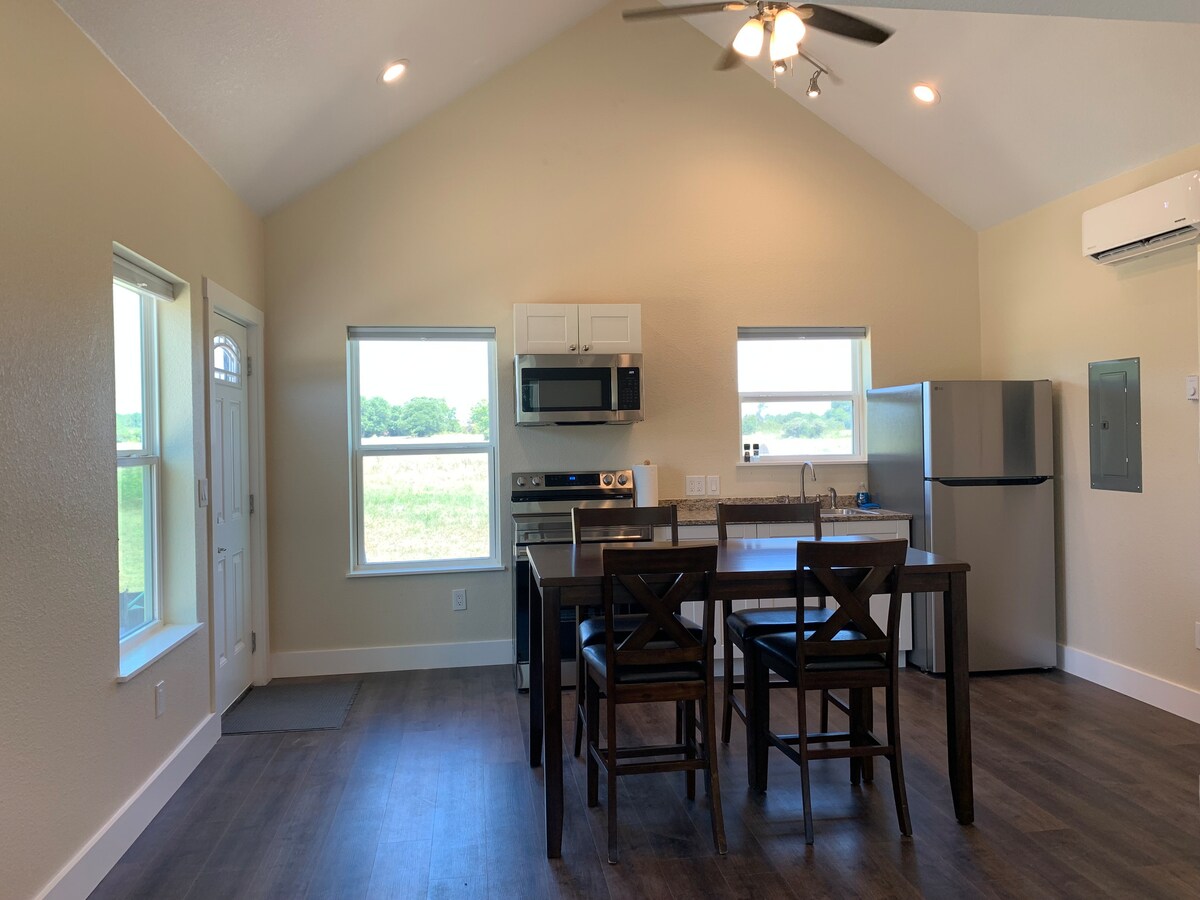 這個度假勝地會讓你驚訝。距離Magnolia & Waco 10分鐘,距離Heritage Homestead 5分鐘,您可以成為城市遊客、逃離城市,或兩者兼而有之! 坐落在一個30英畝的宅地中心,我們自己照顧,我們有一個大花園區域、池塘、牛、山羊、自由放牧的雞、鴨子等。 這間小屋於2024年新建,可欣賞我們30英畝房源的無阻礙景觀。 配有一張雙人床和一張沙發床,非常適合獨特的度假。