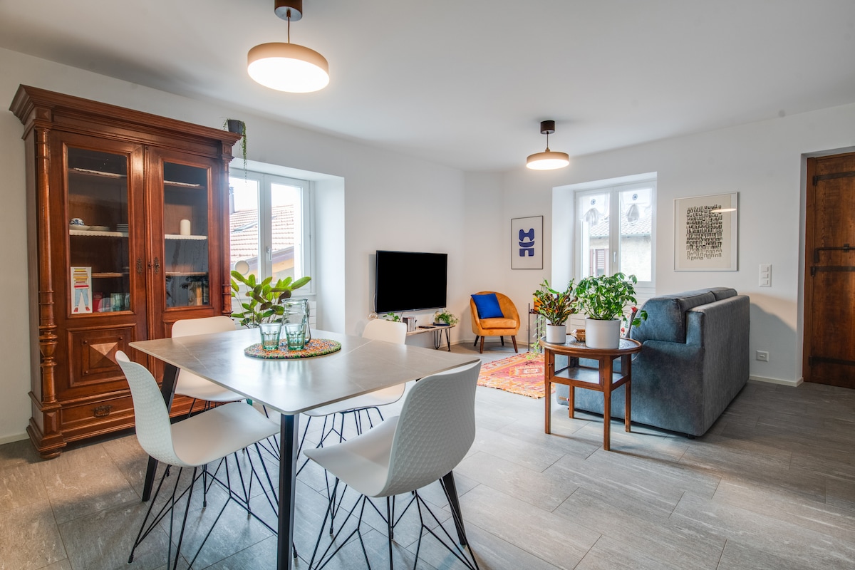 Enjoy a stylish and peaceful holiday in a modern and bright flat with all the necessary comforts, consisting of 2 rooms, veranda, open-plan kitchen, modern bathroom, air conditioning, laundry room. Monte Carasso is 2 km from the town centre of Bellinzona. From here you can reach the footpaths to the Ponte Tibetano Carasc and the Monte Carasso-Mornera cable car in just a few minutes. A convenient footbridge connects you to Bellinzona and its castles. Parking spaces in the blue zone at 50m