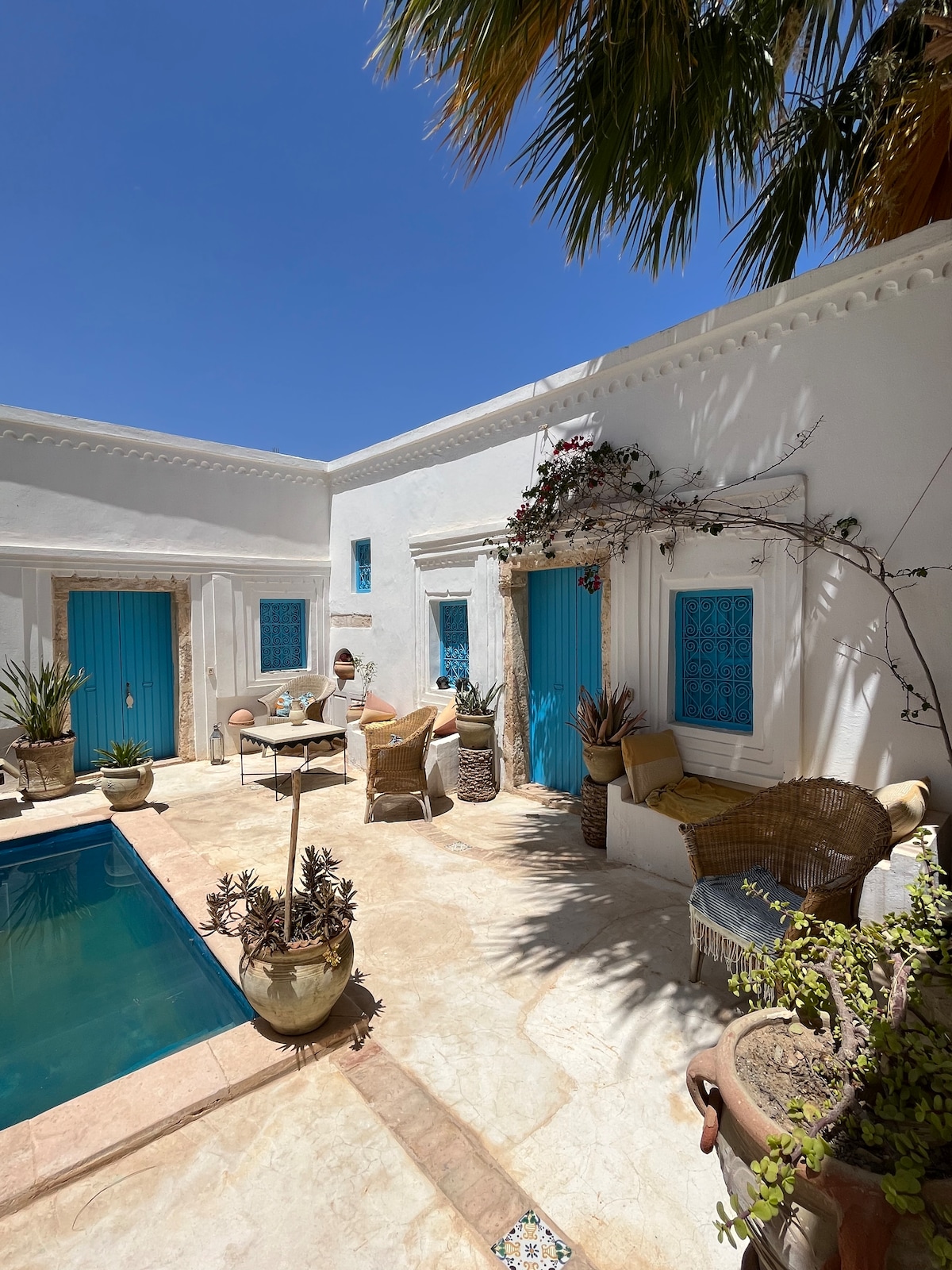 Dar El Mina vous accueille dans un cadre djerbien authentique, propice au calme et à la convivialité. Piscine, palmiers, chant des oiseaux... tout invite à la détente. Idéalement située, la maison se trouve juste en face de la marina de Djerba et de la mer : quelques pas suffisent pour admirer les bateaux et l’horizon. Un lieu paisible pour se ressourcer et savourer l’âme de l’île.