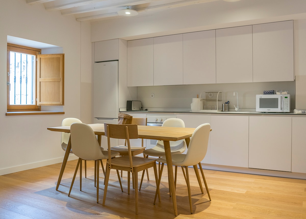 明亮的農村設計公寓,有兩間非常大的臥室和一間浴室。 距離中世紀市中心只有400米。 餐廳配有兩張大沙發沙發和設備齊全的小廚房。 露臺、智能電視、永久溫度控制... 空調、暖氣和wiffi客房。 從智慧型手機開啟數位鑰匙。 一樓。樓梯通道。 30公尺外有免費公共停車位。 住宿名稱: Someza